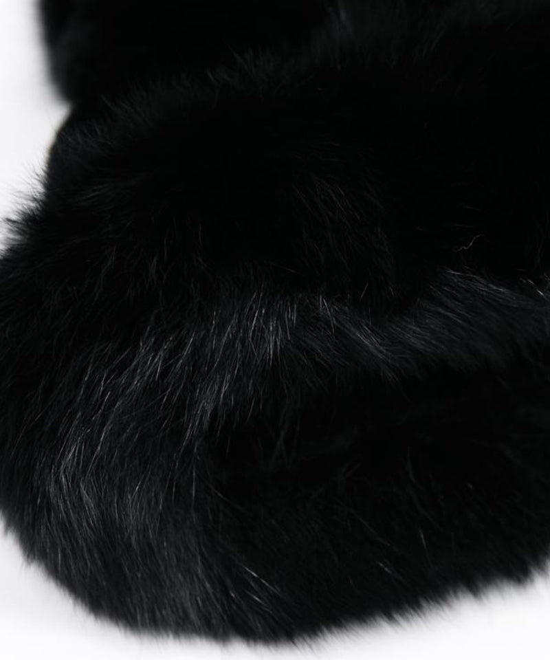 A mix of Rex fur and Fox fur improves warmth. Design points are given by the large bell decoration and fox fur applied to the hem. The inner string adjuster provides a stable fit. This item is highly recommended for creating a feminine style.