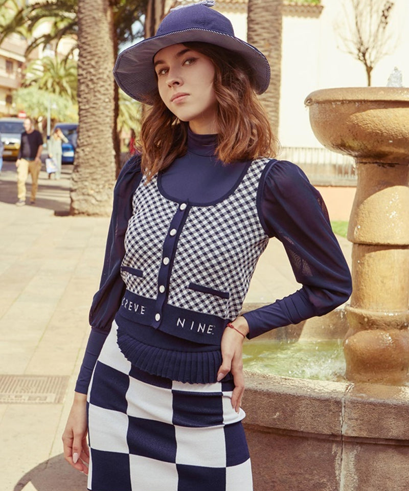 CREVE NINE: Picnic Gingham Women's Vest - Navy
