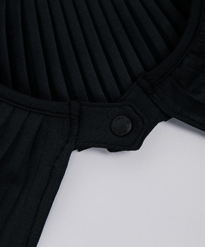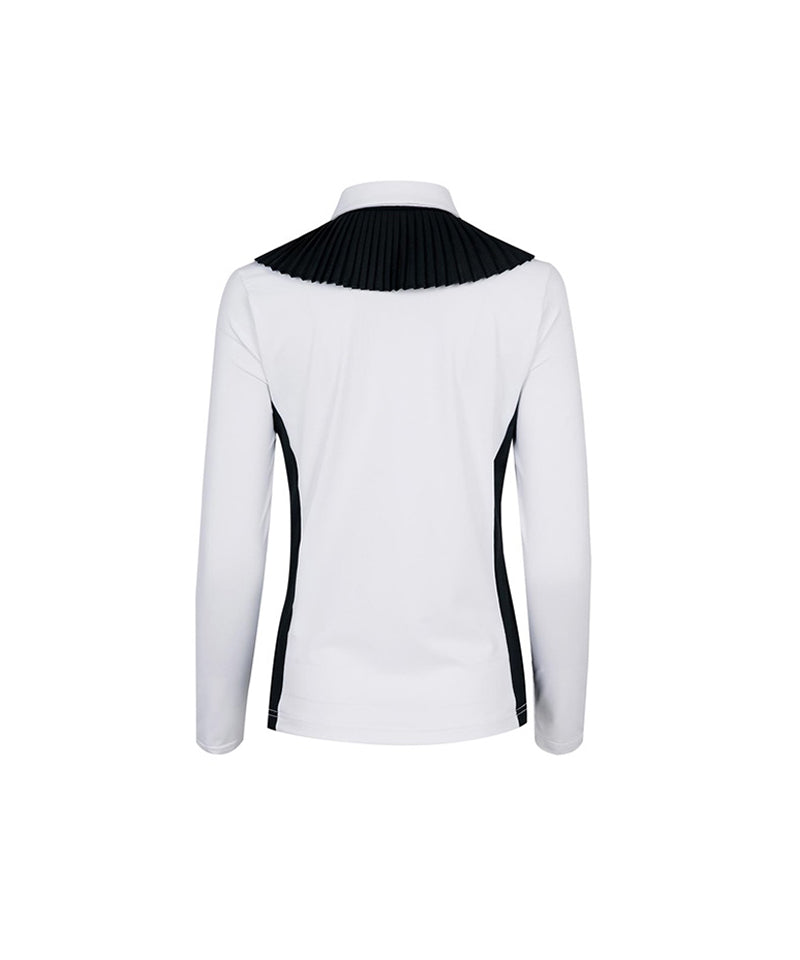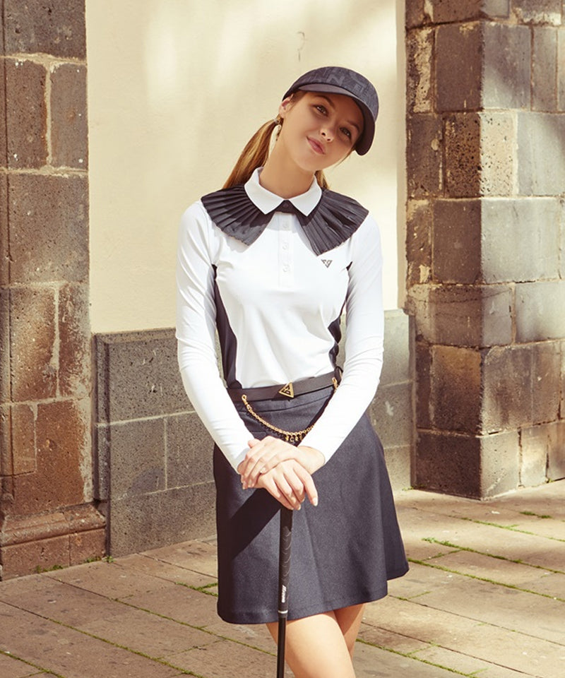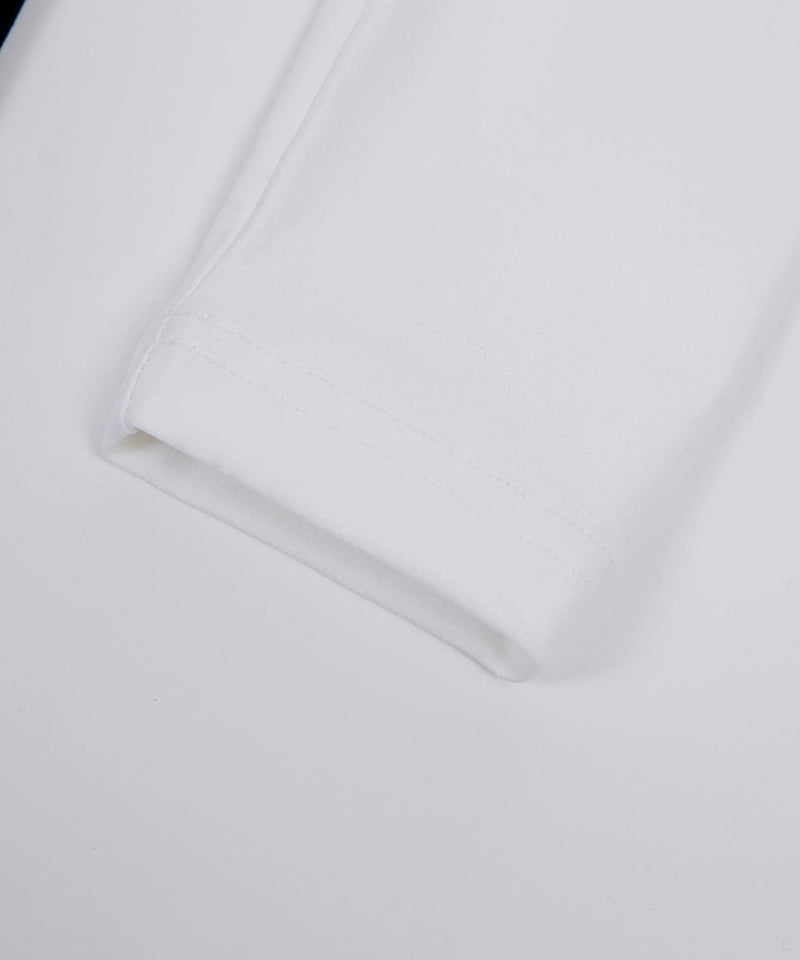 Collar T-shirt with excellent mobility and undisturbed silhouette using a new material, latent crimped yarn fabric.