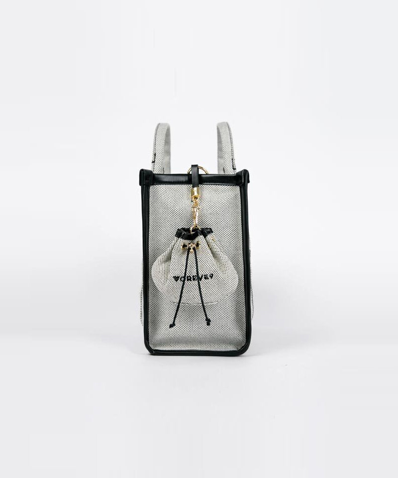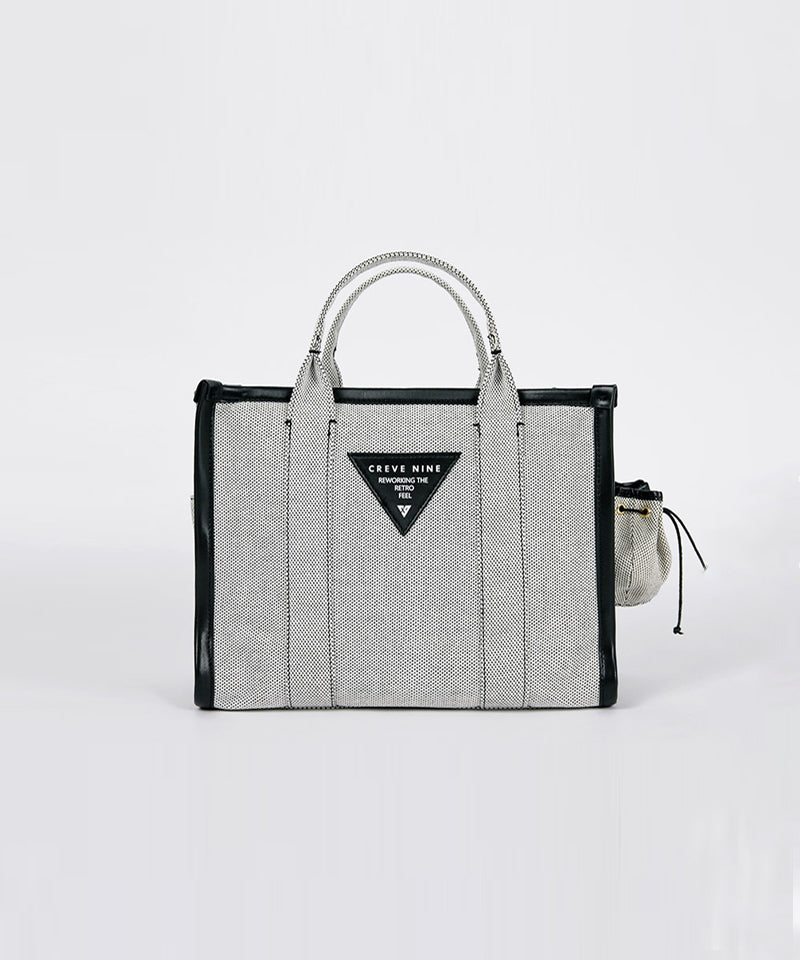 Tote bag made of Oxford fabric Enhances practicality with spacious storage space and internal pockets The included ball pouch is detachable along with the strap for various uses. Light everyday contamination can be prevented by coating the inside of the bag. Logo embroidery, triangle leather patch, and logo-printed shoulder strap create a casual atmosphere. Recommended for use not only for rounding but also for travel, picnics, and daily use.