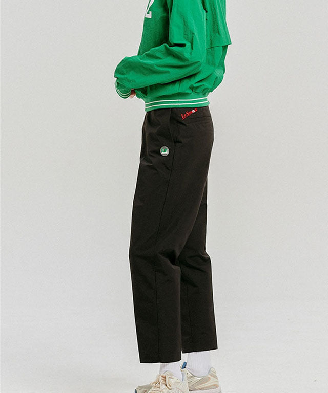 These LE SONNET Technical Pants - Black boast a straight fit, utilizing a functional material that is less prone to wrinkles. Embroidered belt loops and a minimalist design add a stylish highlight. The ankle-length fit allows for versatile styling, enabling a range of looks for daily wear or sports.