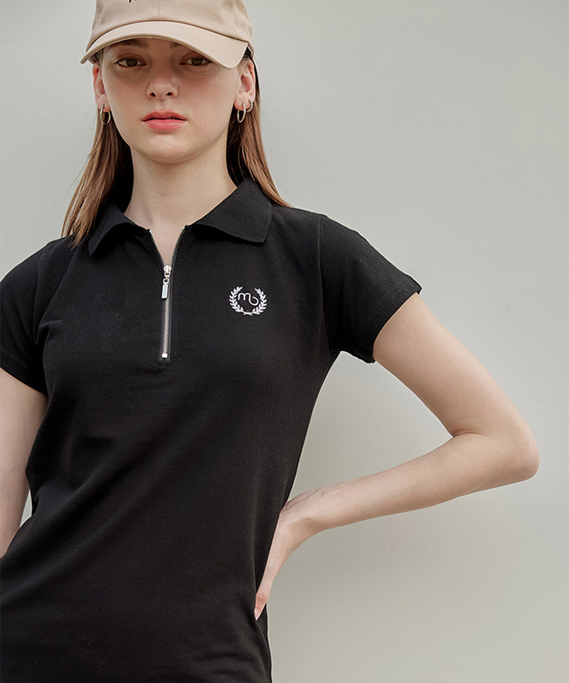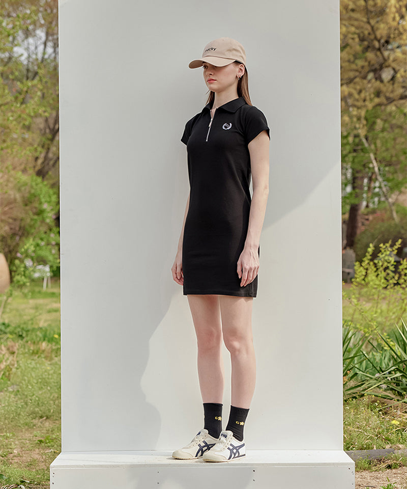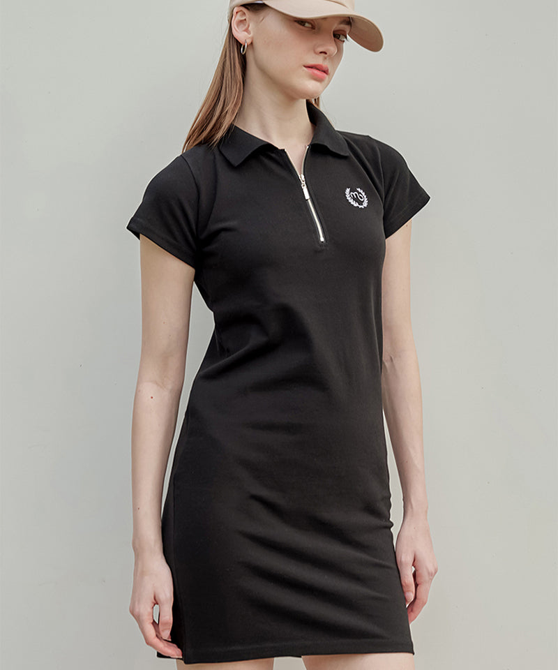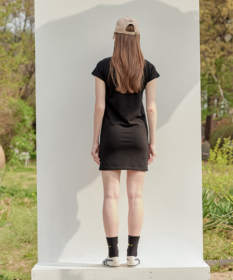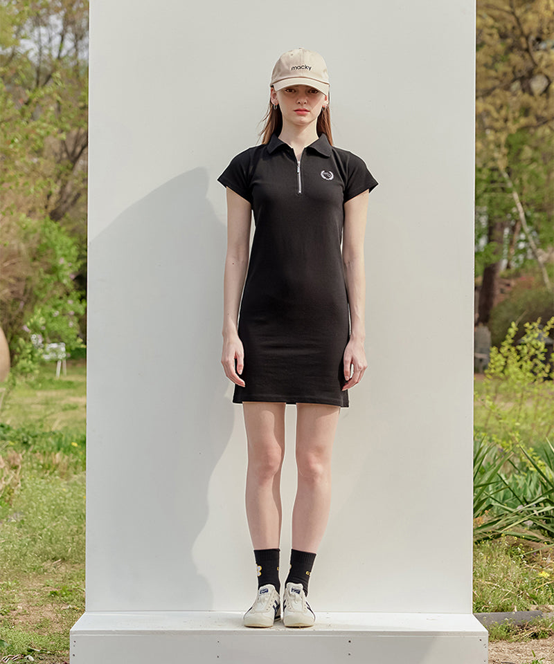 This is a slim dress with a sporty and basic silhouette. You can style with just one dress in a cheerful mood. This is a dress that can be worn alone or paired with an inner t-shirt. This is a basic slim dress with signature Mackie embroidery points.