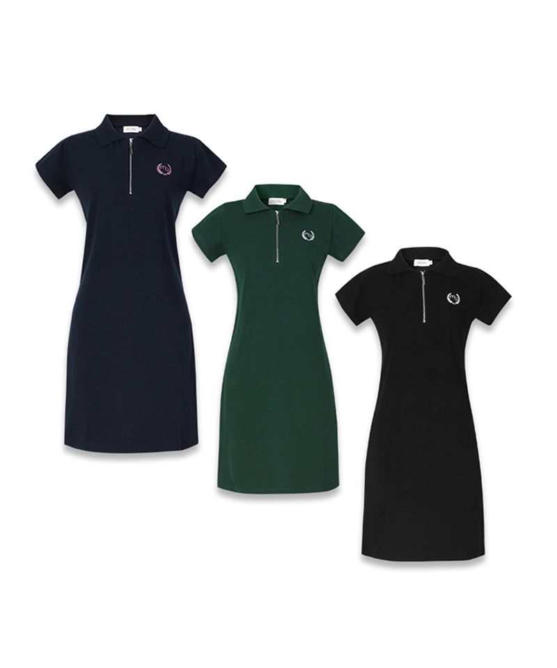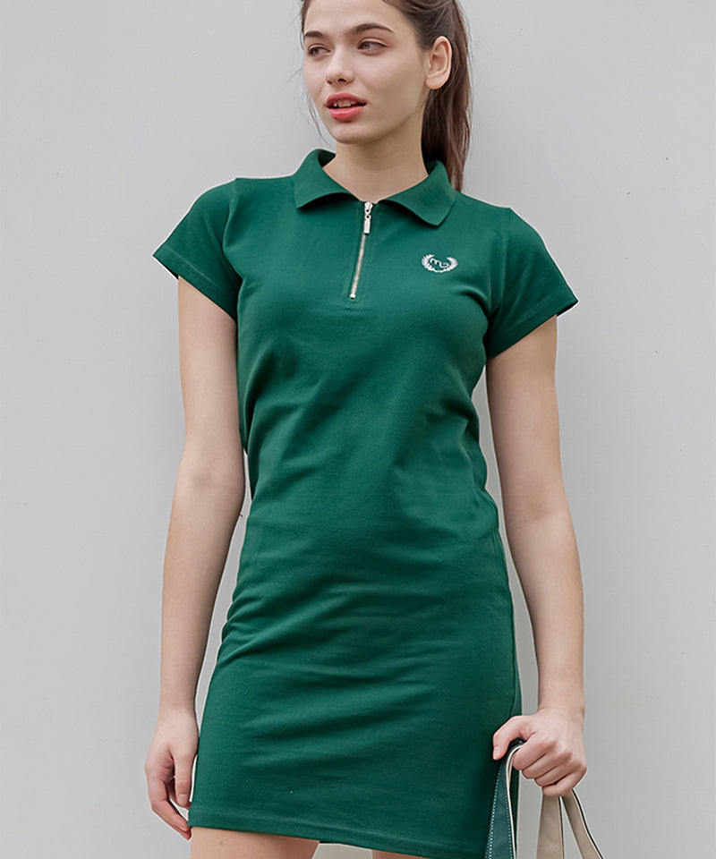This is a slim dress with a sporty and basic silhouette. You can style with just one dress in a cheerful mood. This is a dress that can be worn alone or paired with an inner t-shirt. This is a basic slim dress with signature Mackie embroidery points.