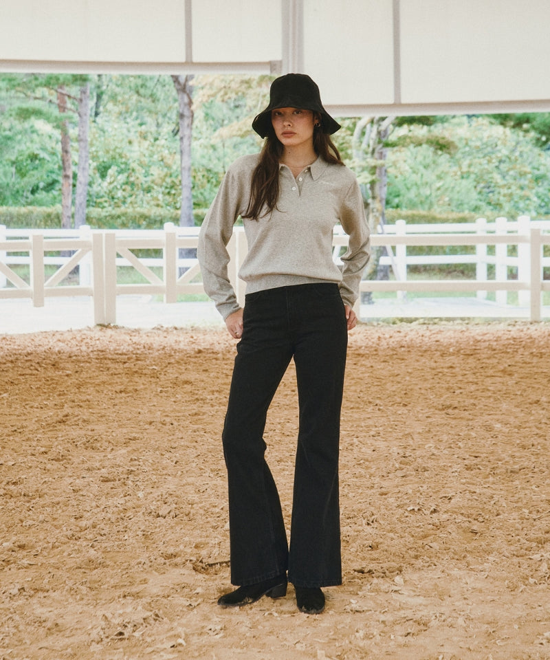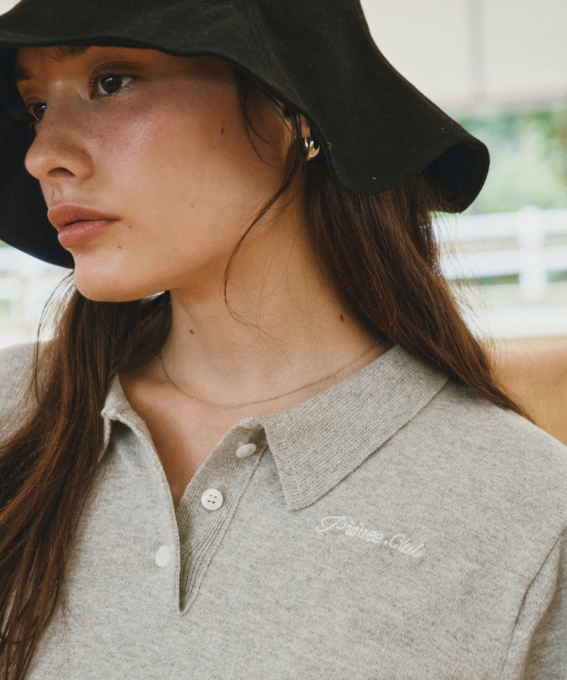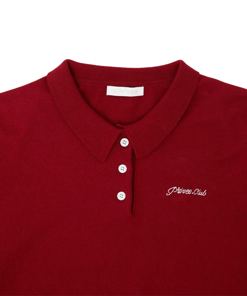 Cotton Cashmere Knit PK Shirt -Wine Red