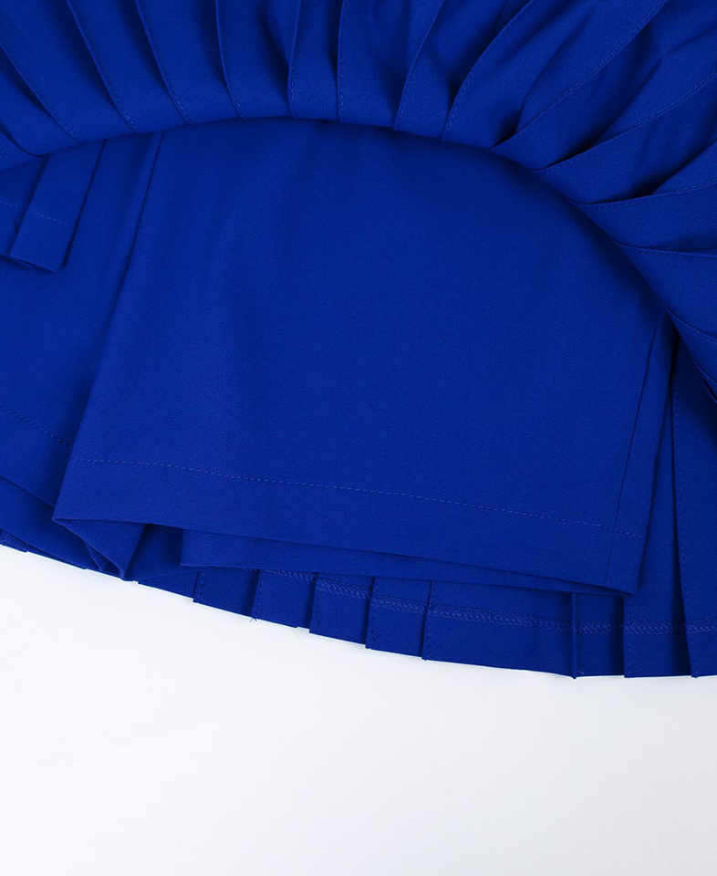 CREVE NINE: Banding Multi-Swing Pleated Skirt - R/Blue