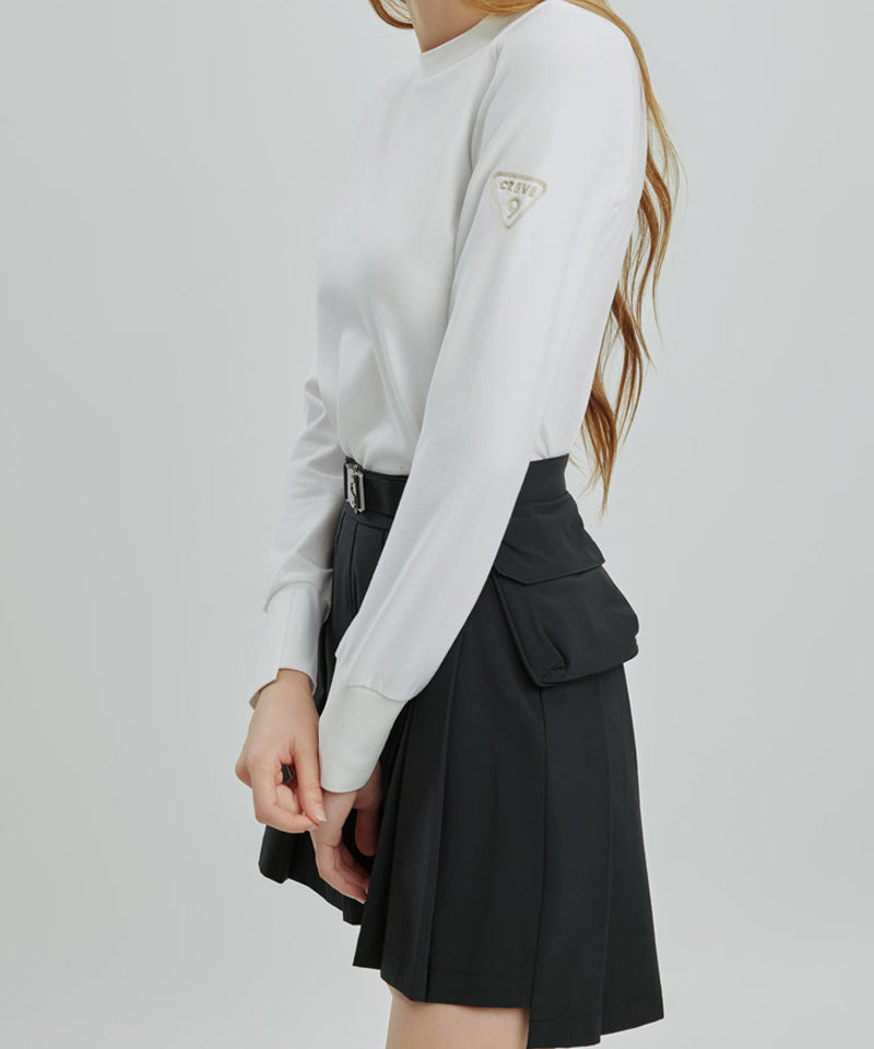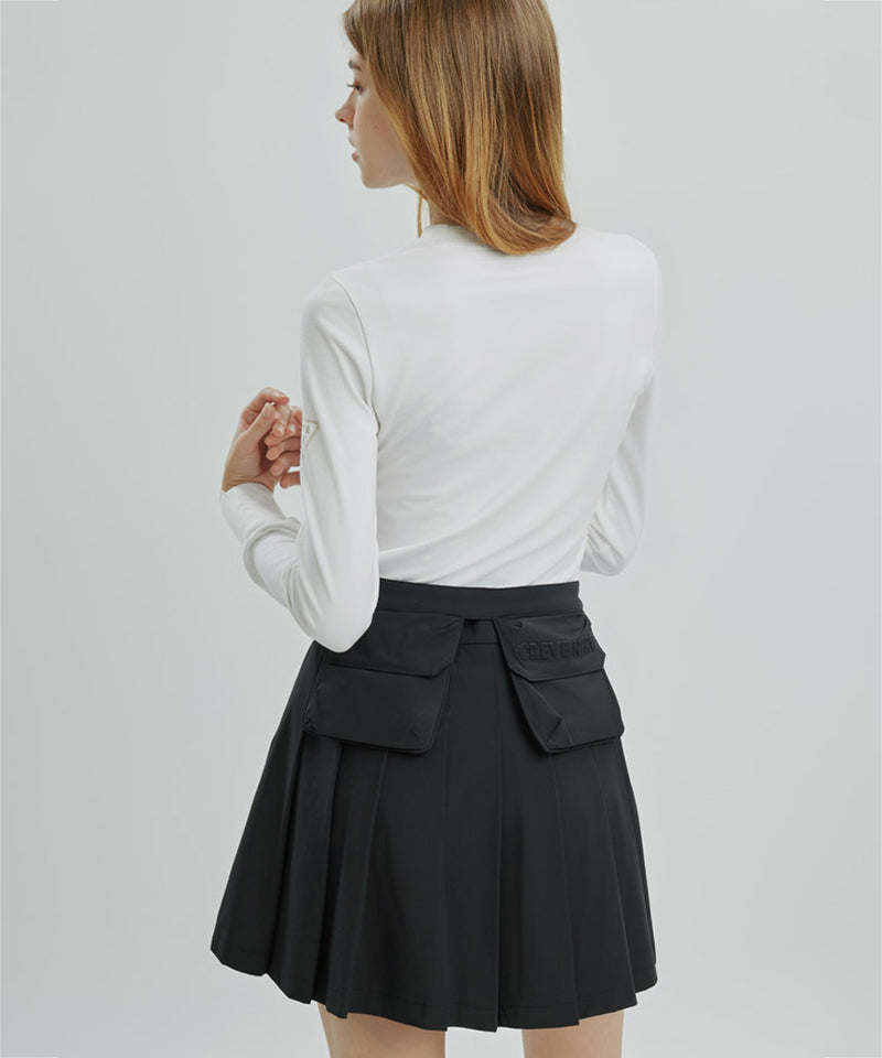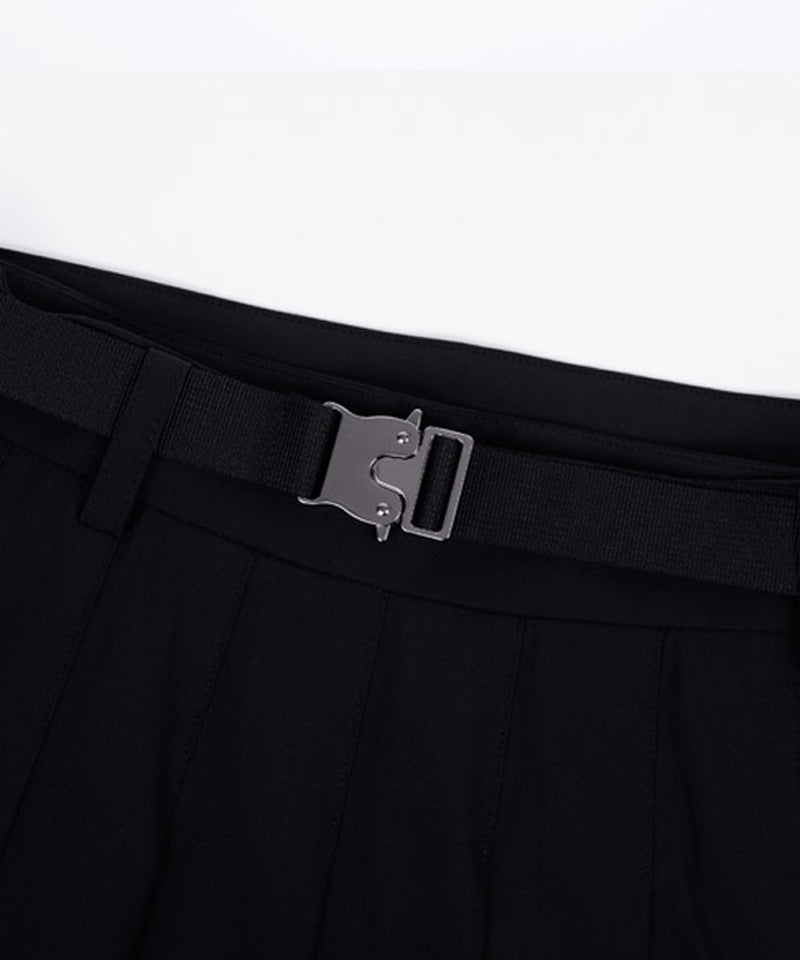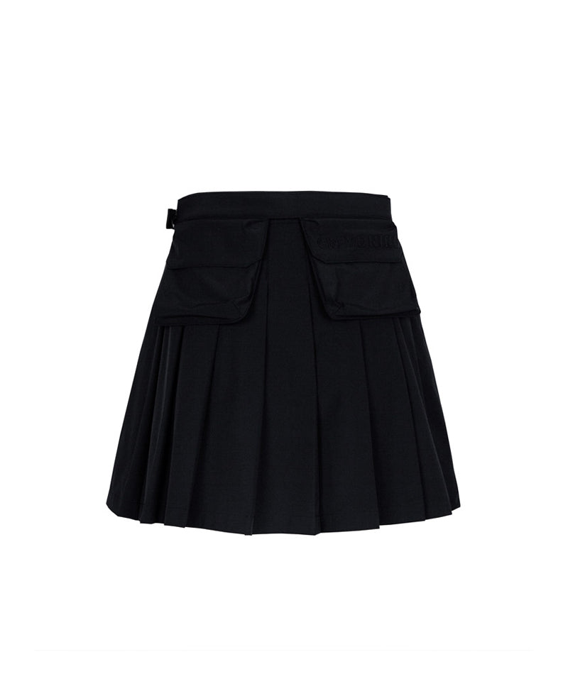 CREVE NINE: Belt Bag Pleated Skirt - Black