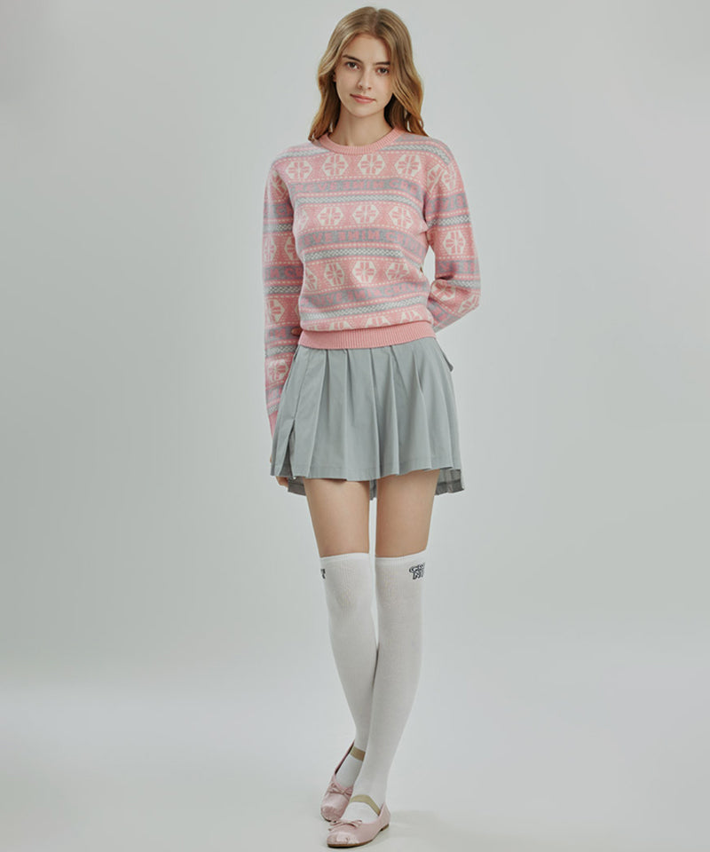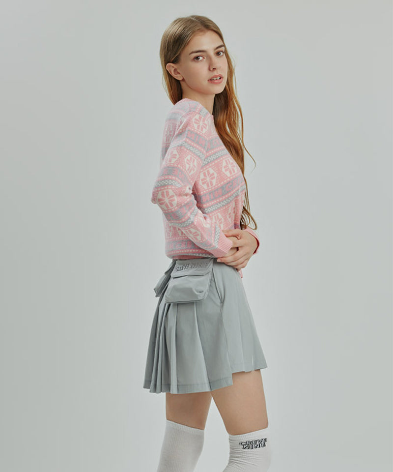 CREVE NINE: Belt Bag Pleated Skirt - Gray
