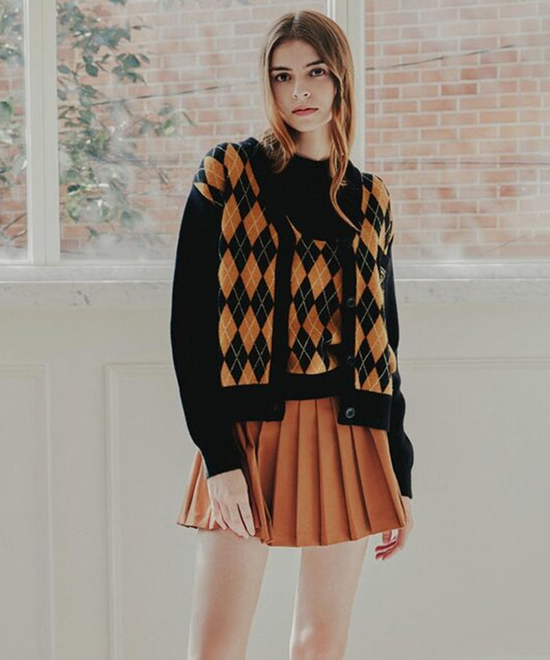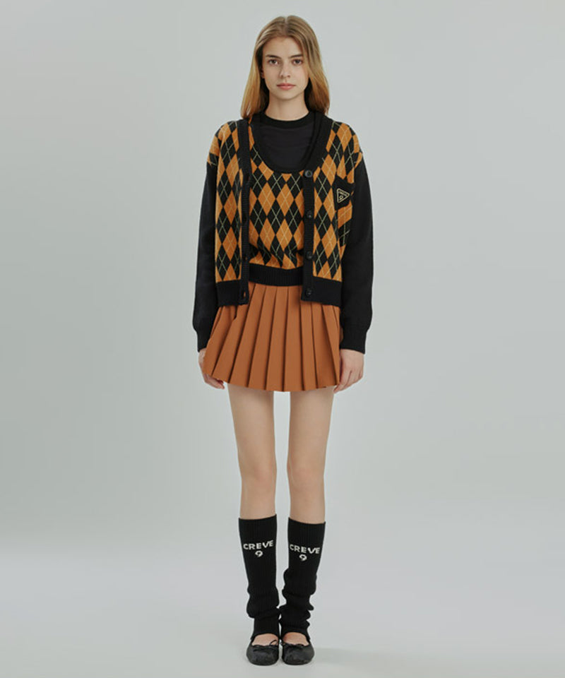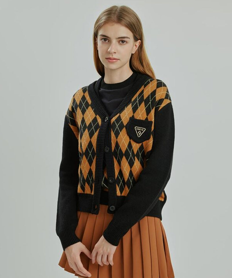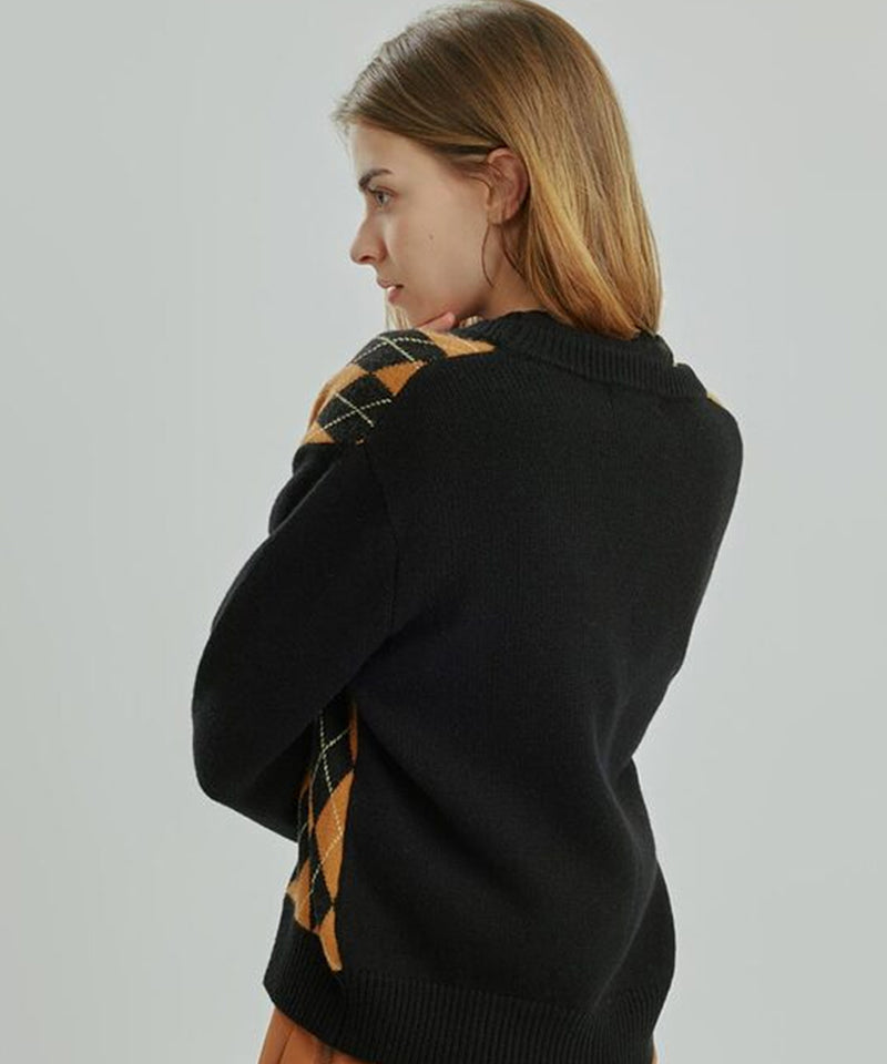 This sweater combines style and comfort, crafted from 100% wool for excellent heat retention. Its trendy Argyle pattern adds a fashionable touch, while the loose fit ensures it flatters various body shapes. Designed for casual, everyday wear, this sweater features a chest pocket adorned with logo embroidery for a unique detail. For a coordinated look, it pairs perfectly with the embroidered Argyle knit vest and Argyle middle socks.