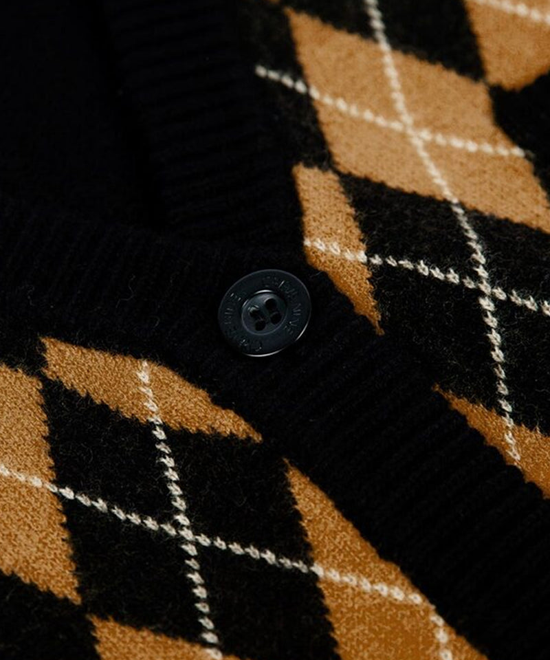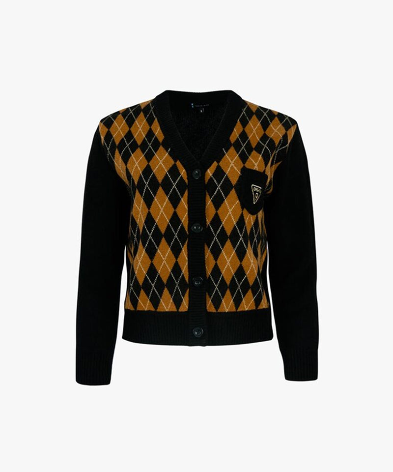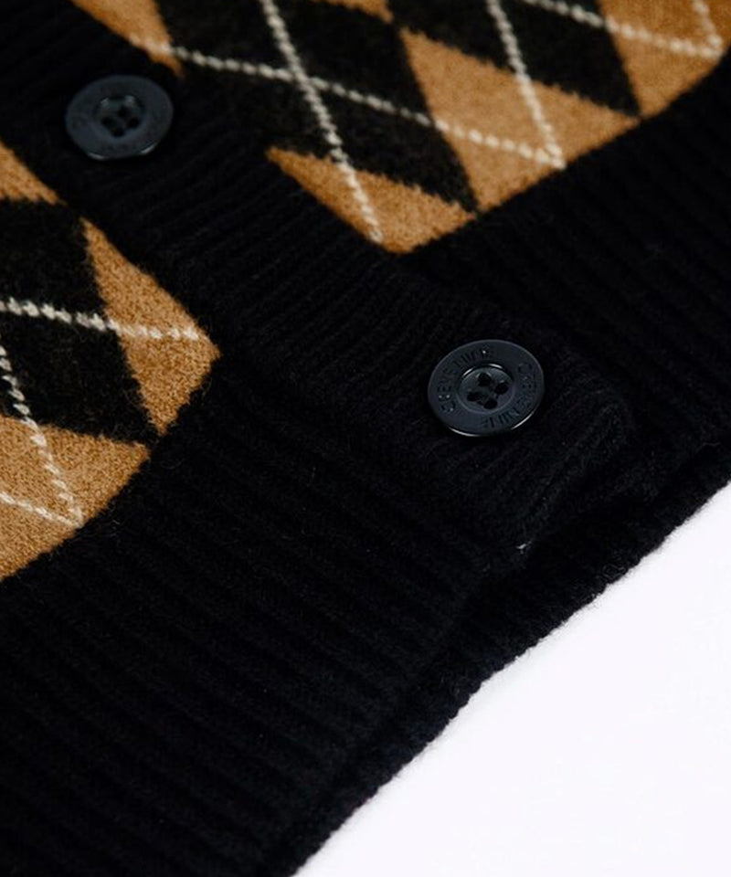 CREVE NINE: Embroidered Argyle Knit Cardigan - Black