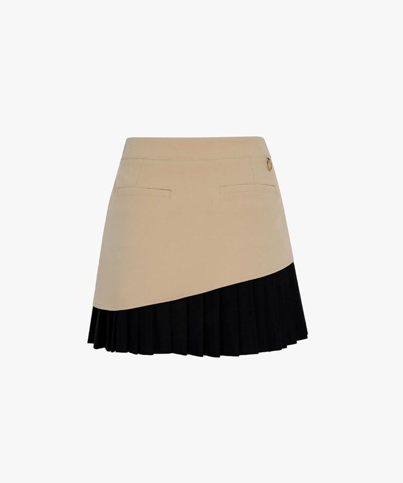 CREVE NINE: Logo Color Combination Point Pleated Skirt - Beige
