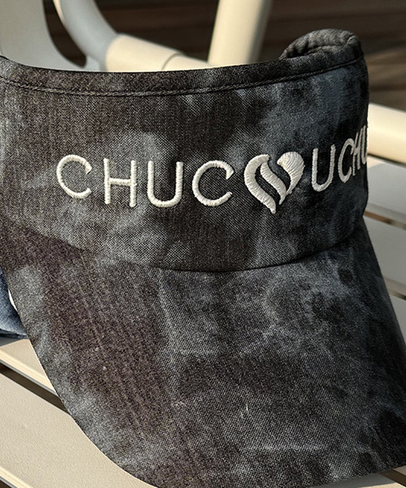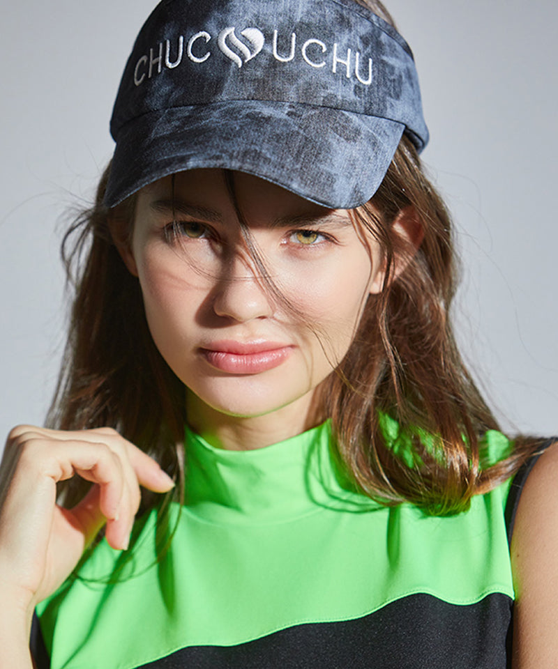 Visor with marble pattern fabric black colored marble skirt and set item recommended. Embroidered logo decoration on the front comfortable fit even when used for a long time. Size adjustment with back Velcro strap.