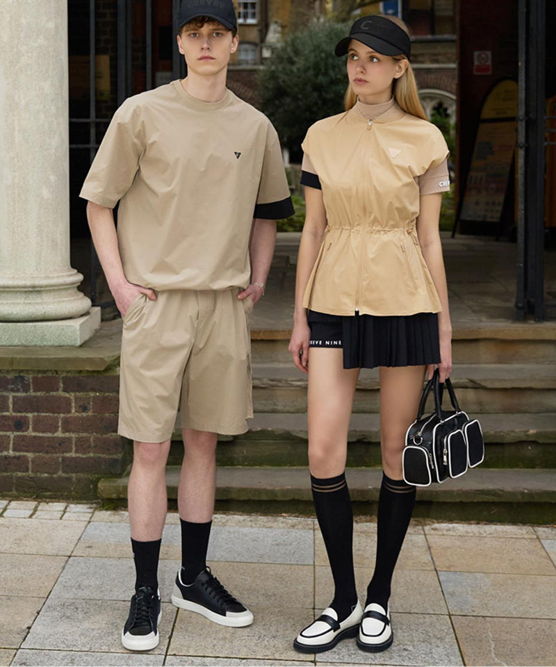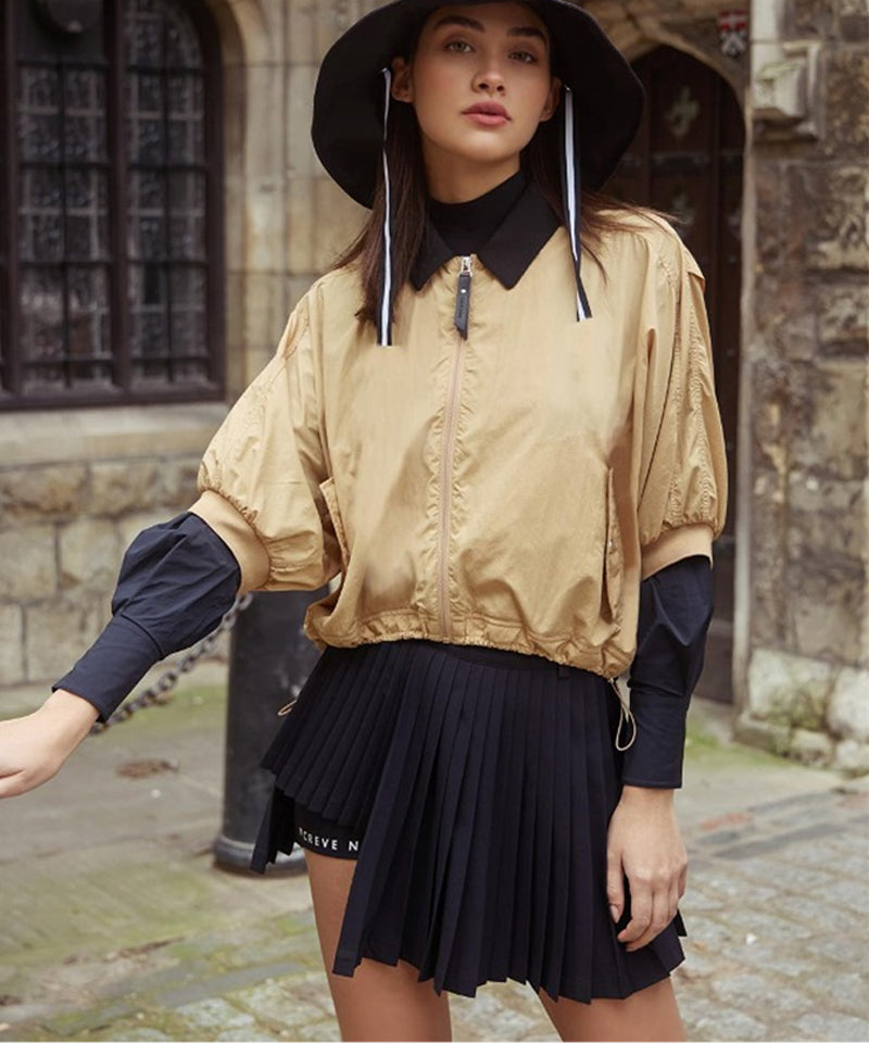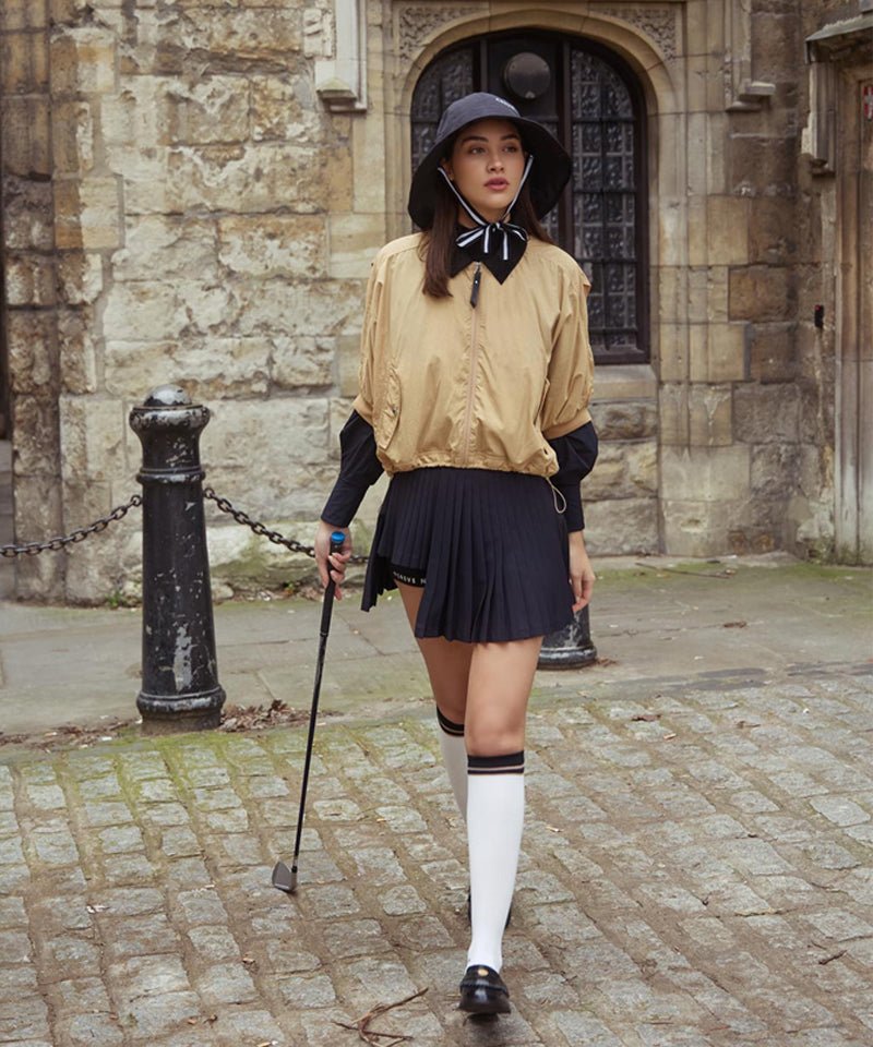 Signature Swing Pleats maximize transparency prevention with special technology (UVEIL fabric). The cutting design creates an unrivaled silhouette when swinging. The pants are made with a single piece of fabric to prevent see-through and can be worn comfortably. Comfortable activities are possible by attaching fabric pants. Pleated details create a feminine mood. The bottom logo detail adds uniqueness and a cooling effect when worn.