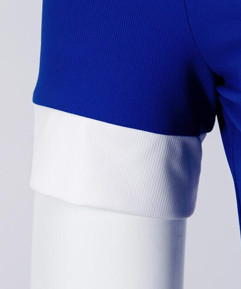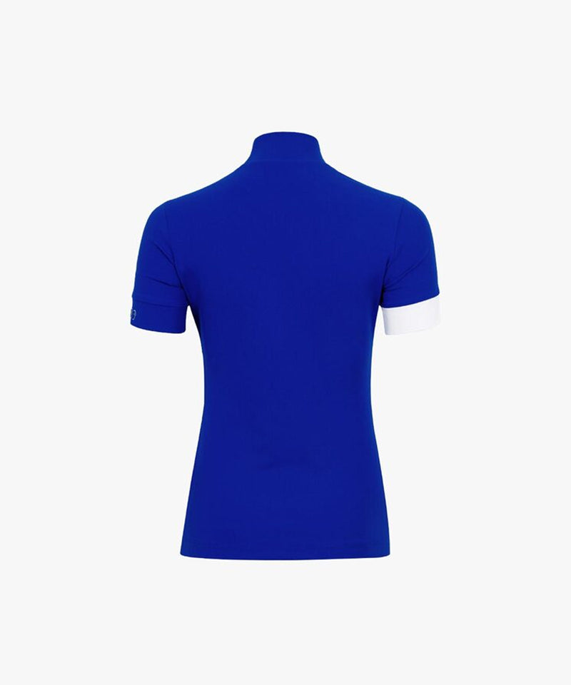 Neck slit point ribbed tee two-tone volume logo detail UV protection effect Excellent elasticity due to ribbed tissue. Spandex yarn provides a comfortable fit and optimal swing possible through the use of functional materials.
