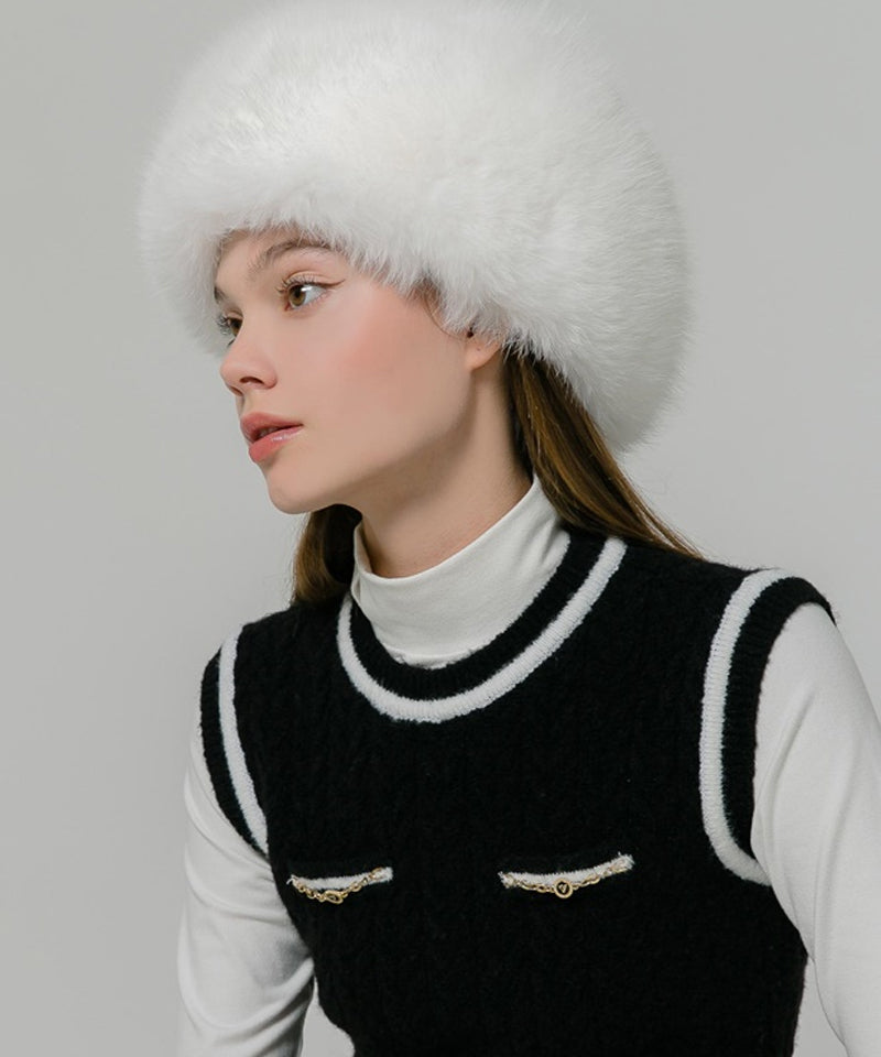 The two types of natural fur, fox and rex, and the quilted lining completely block the cold wind and provide excellent heat retention. There is a loop to attach a scarf to, so you can connect the scarf and tie a ribbon to secure it, creating a variety of looks. The scarf can be worn on its own, depending on your style. This Russian fur hat allows you to comfortably enjoy winter round trips thanks to the unique luxury and warmth of natural fur.
