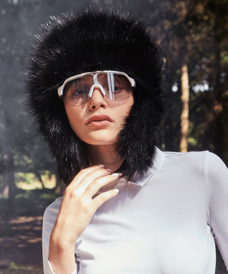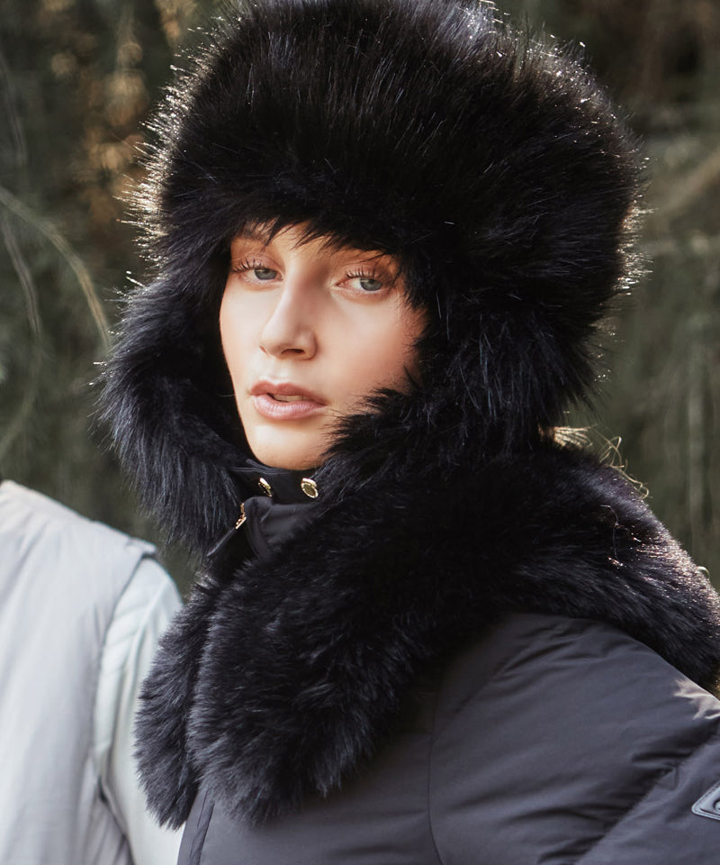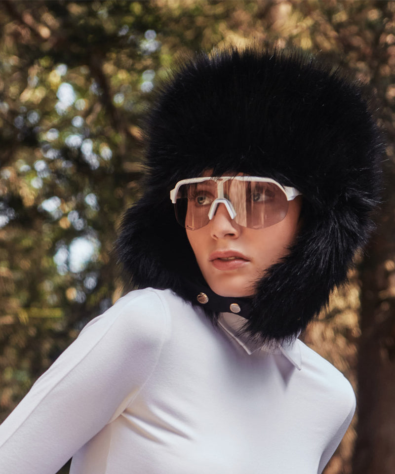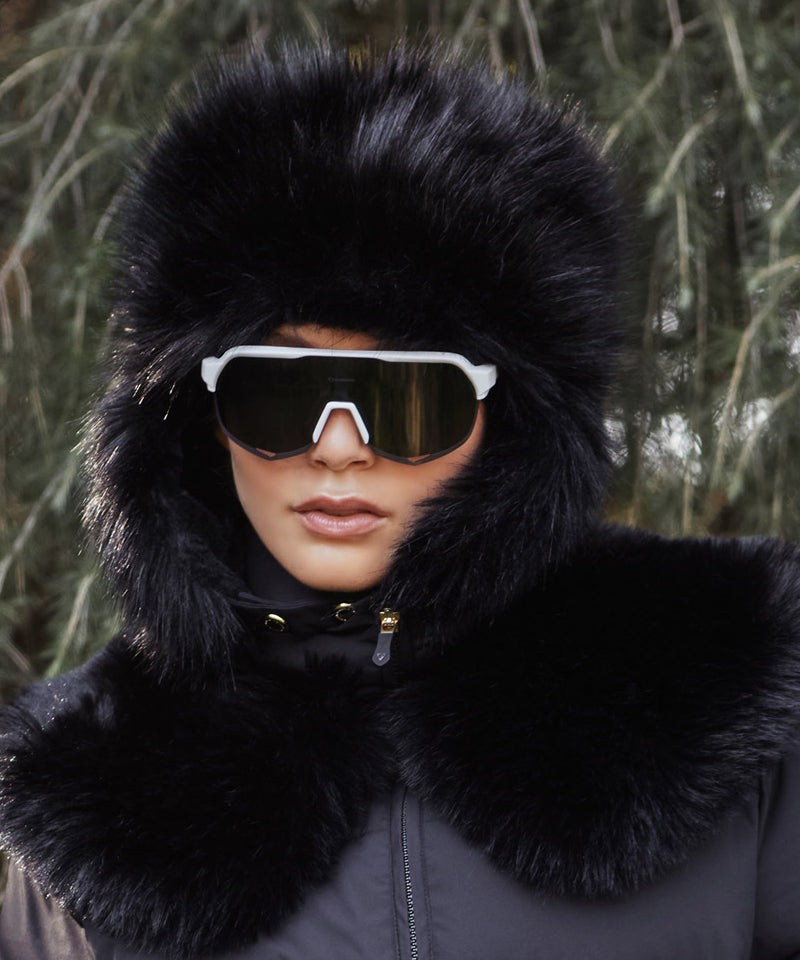 CREVE NINE: Skier Fur Ear Cap - Black
