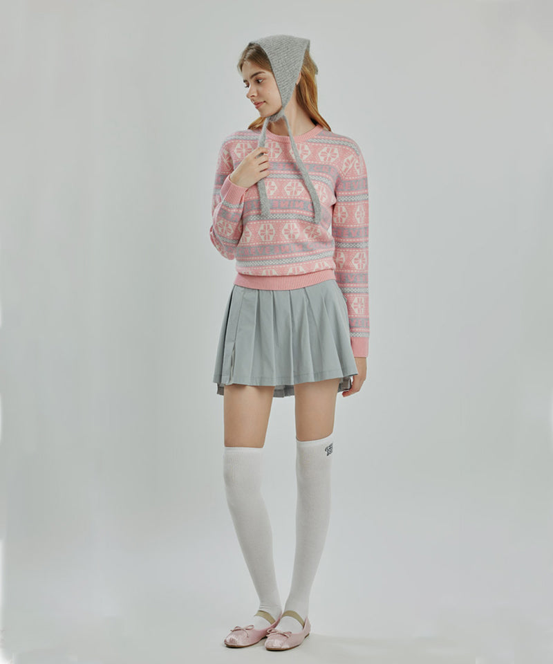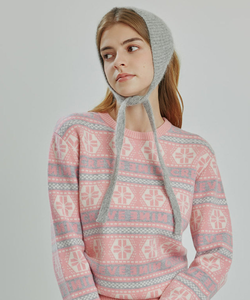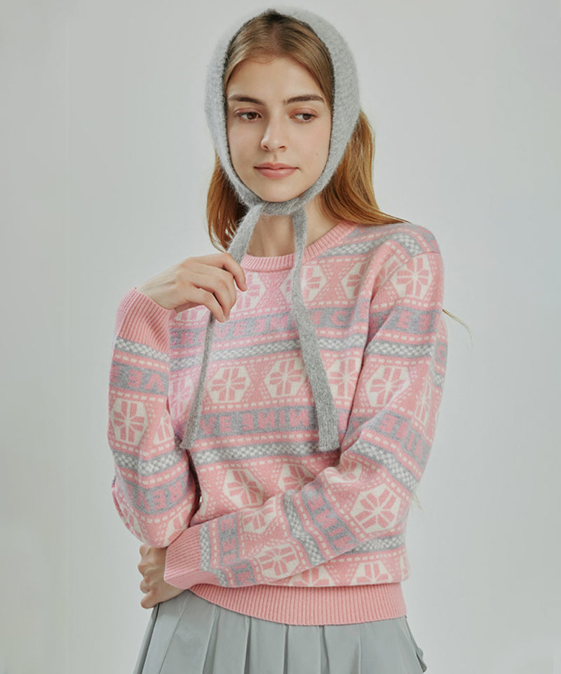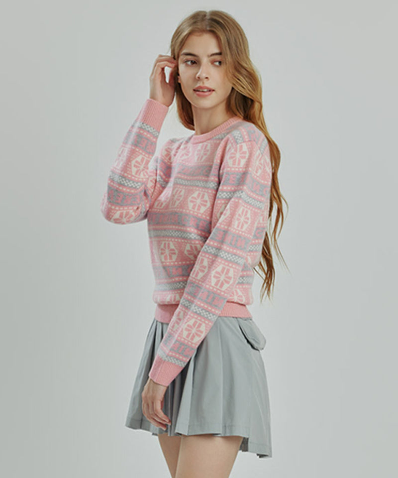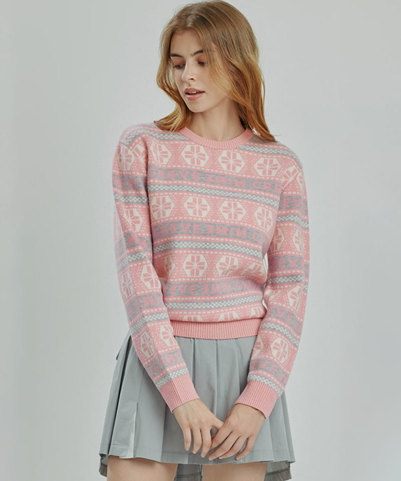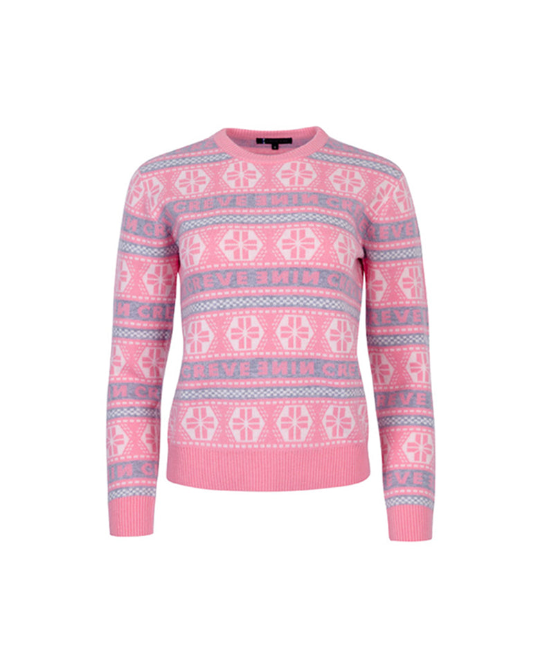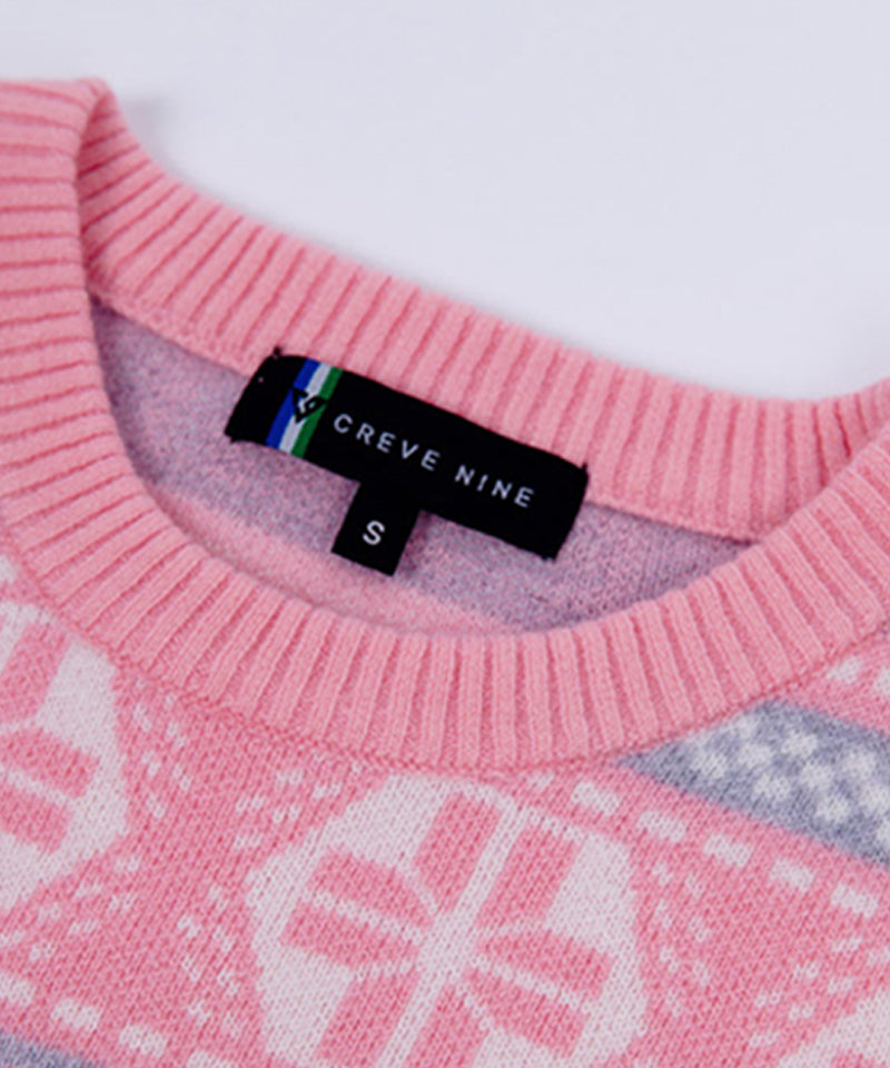 CREVE NINE: Striped Logo Jacquard Sweater - Pink
