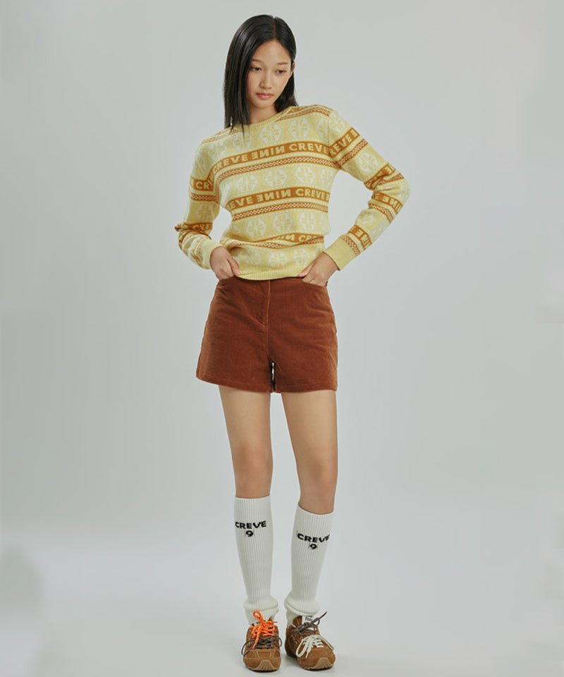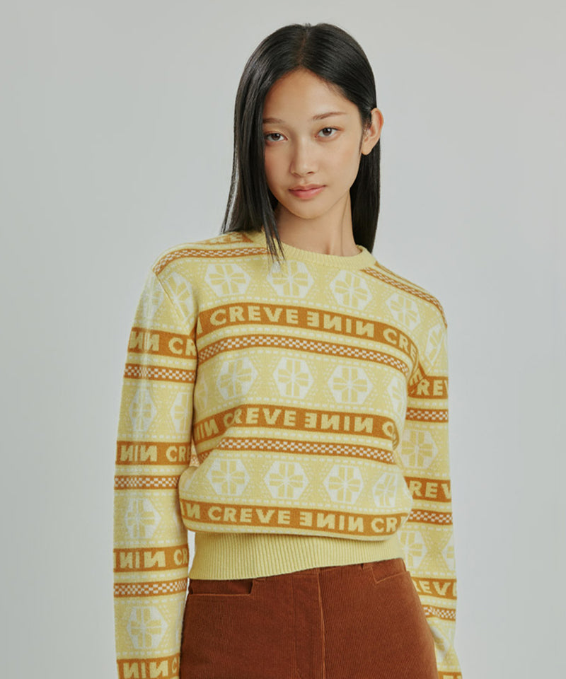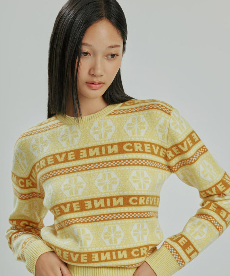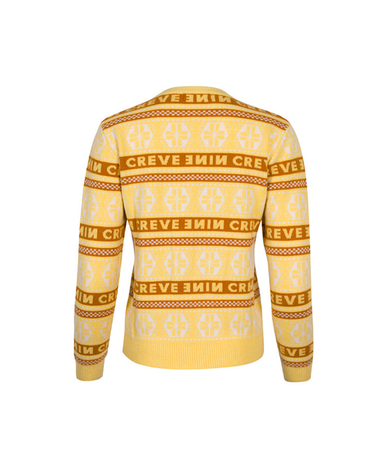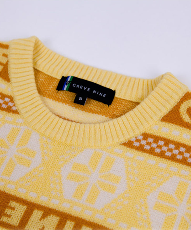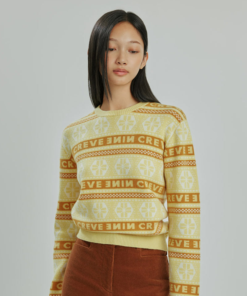 CREVE NINE: Striped Logo Jacquard Sweater - Yellow