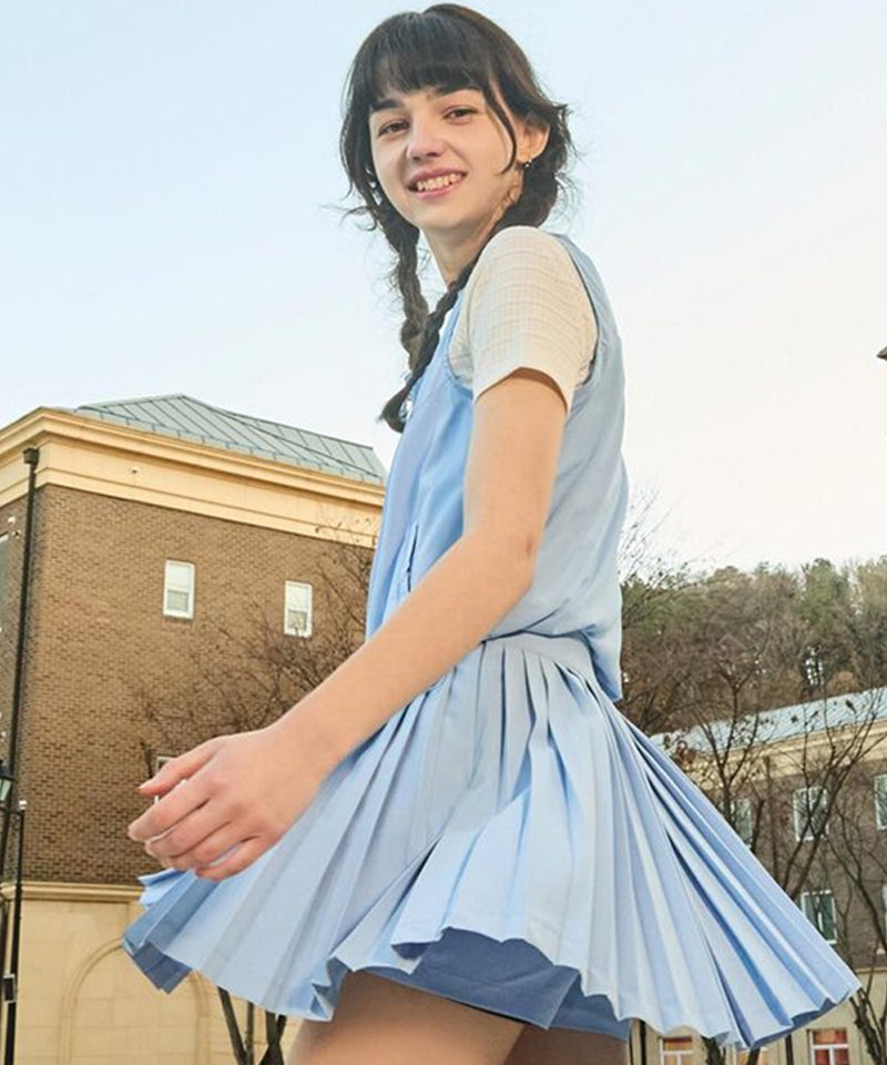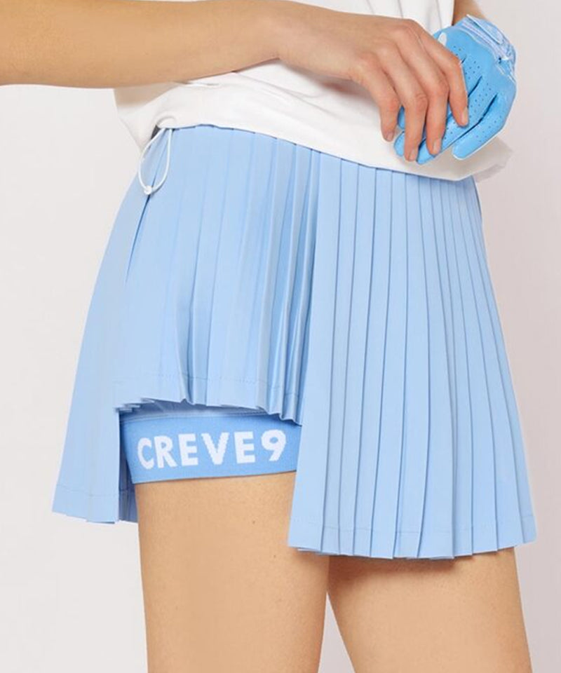 Creve Nine Signature Swing Pleats waterproof and UV protection prevents see-through. Unique style with unbalanced length comfortable to wear with built-in fabric pants two-tone color ribbed hem point.