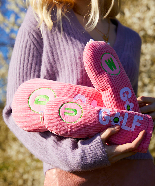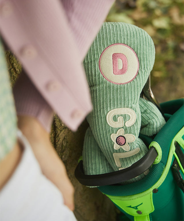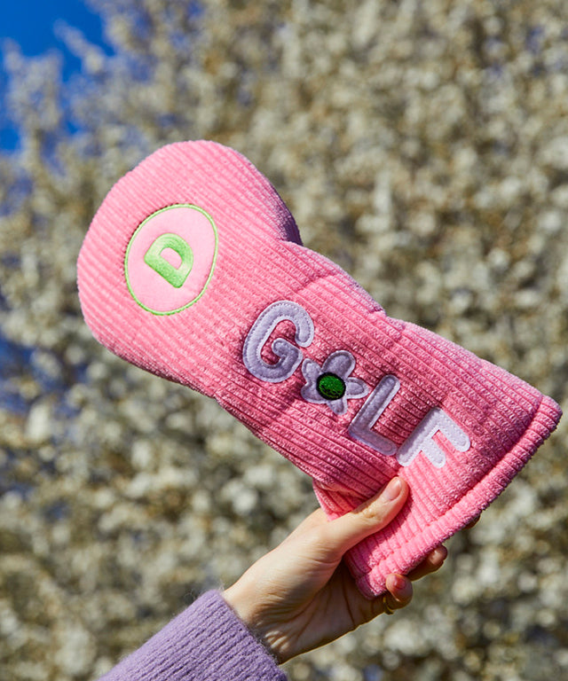 This is Driver cover made using a cozy, soft, and trendy corduroy material. The GOLF with DIMPLE GOLF's signature Golf flower is expressed wittily. It is a golf headcover that stands out with the light color of mint and pink. The lining is made of bulky boucle material so soft that is perfect for protecting your club heads.