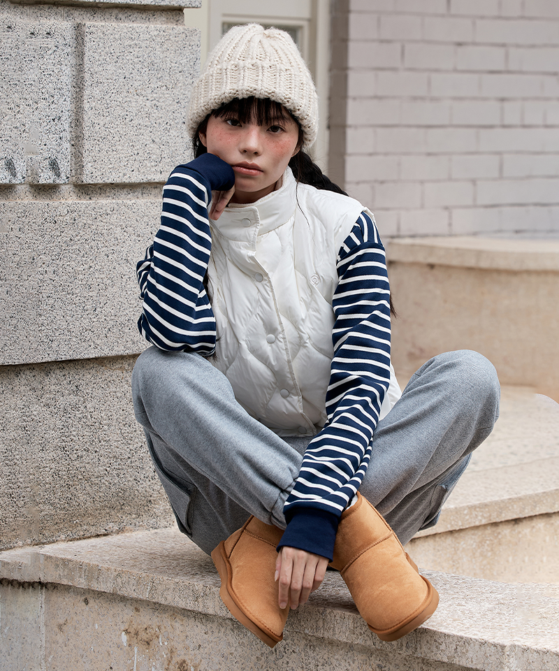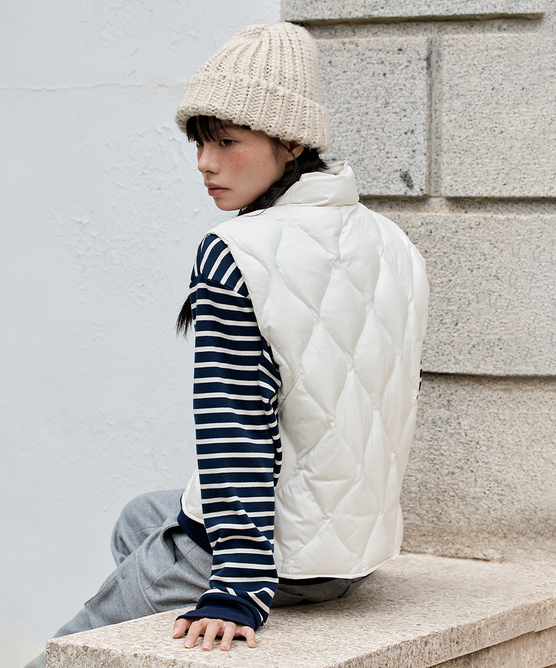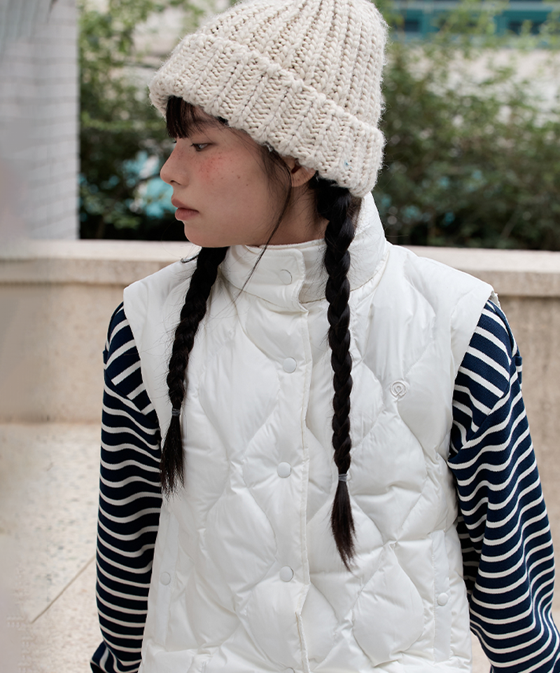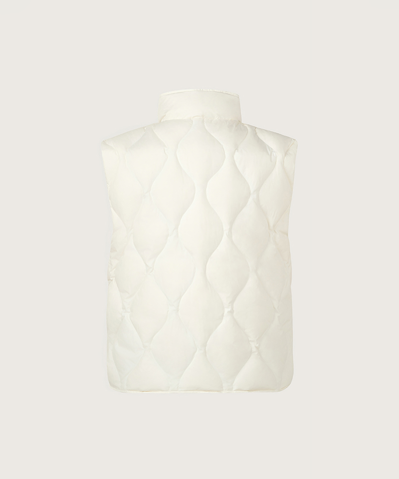 The FORDI Airy Duck Down Vest in Beige combines lightweight warmth with sleek sophistication. Filled with premium duck down, this vest provides exceptional insulation while maintaining a streamlined silhouette. Ideal for layering, it adds an elegant touch to your outfit, keeping you comfortably warm during transitional weather without bulk.