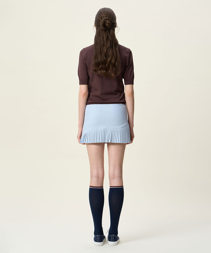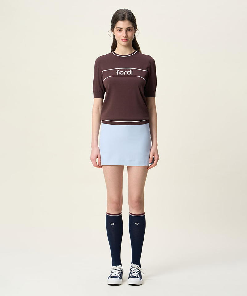 Elevate your style with this elegant pleated skirt featuring a back yoke detail for a sophisticated touch. The semi A-line cut creates a feminine silhouette with graceful movement, while fordi's embroidered symbol adds a luxurious accent. Designed for comfort with a back logo band and built-in shorts for secure wear. Perfect for effortless chic with a flattering drape.