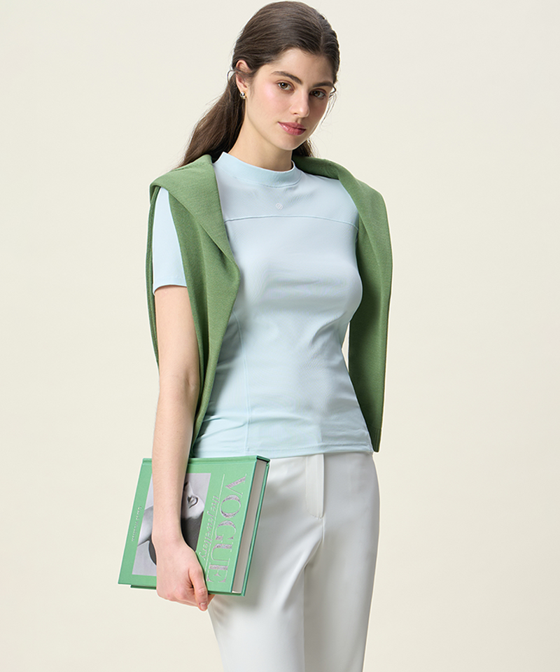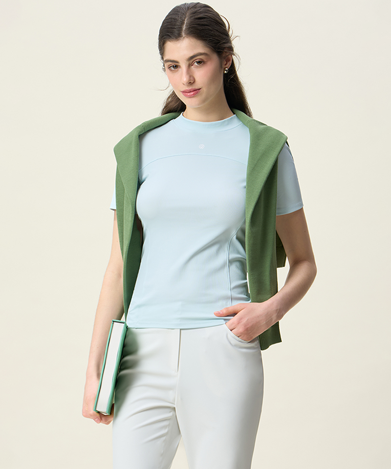 [Season End] FORDI Golji Mock Neck Short Sleeve T-Shirt - Baby Blue