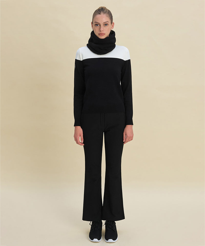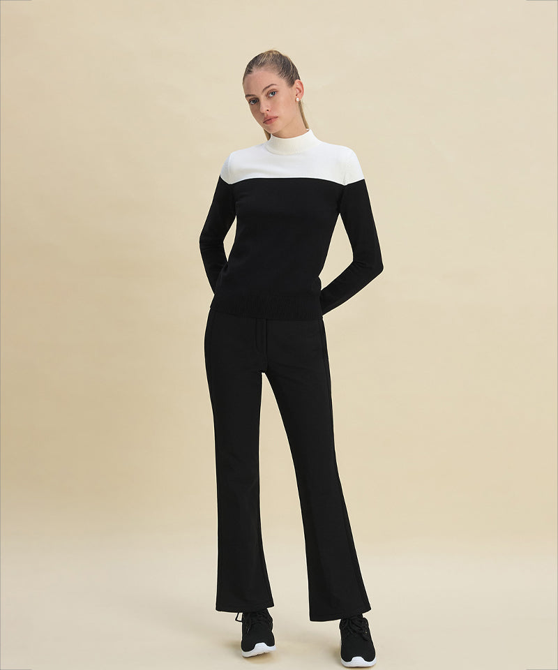 The high waist provides a stable fit and completes a slim outfit padded slim bootcut long pants. Use of microfiber filling that boasts warmth, soft touch, and light weight 2 ounce microfiber cotton is built into the front panel, providing excellent heat retention. Can be worn warmly even in the middle of winter the front panel is breathable and waterproof for outdoor activities in the winter season. Use of excellent functional materials. The back panel uses two-way stretch material with brushed lining for a warm and comfortable fit offer. A structural pattern that completes a long and slim legline even though it is made of padding and brushed material. Boasts excellent thermal insulation thanks to its brushed and padded double insulation structure. From winter season fairways to daily life with sensible design and use of functional materials essential item you need.