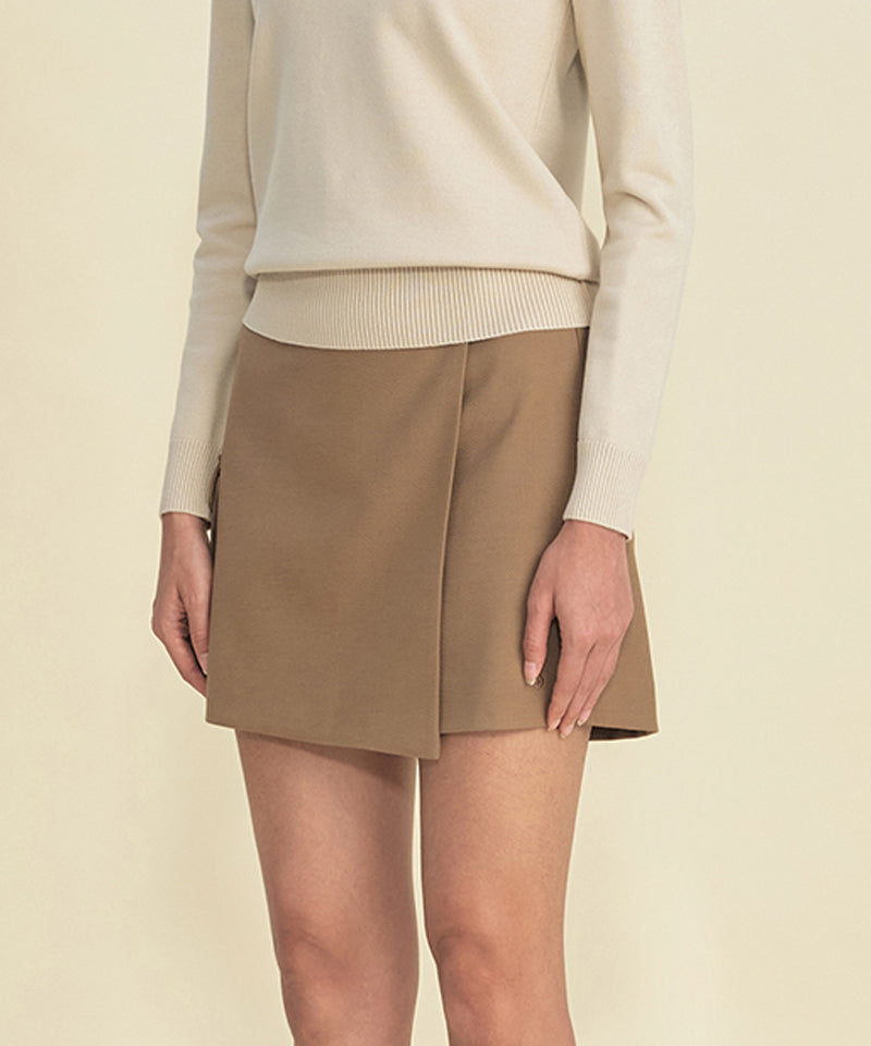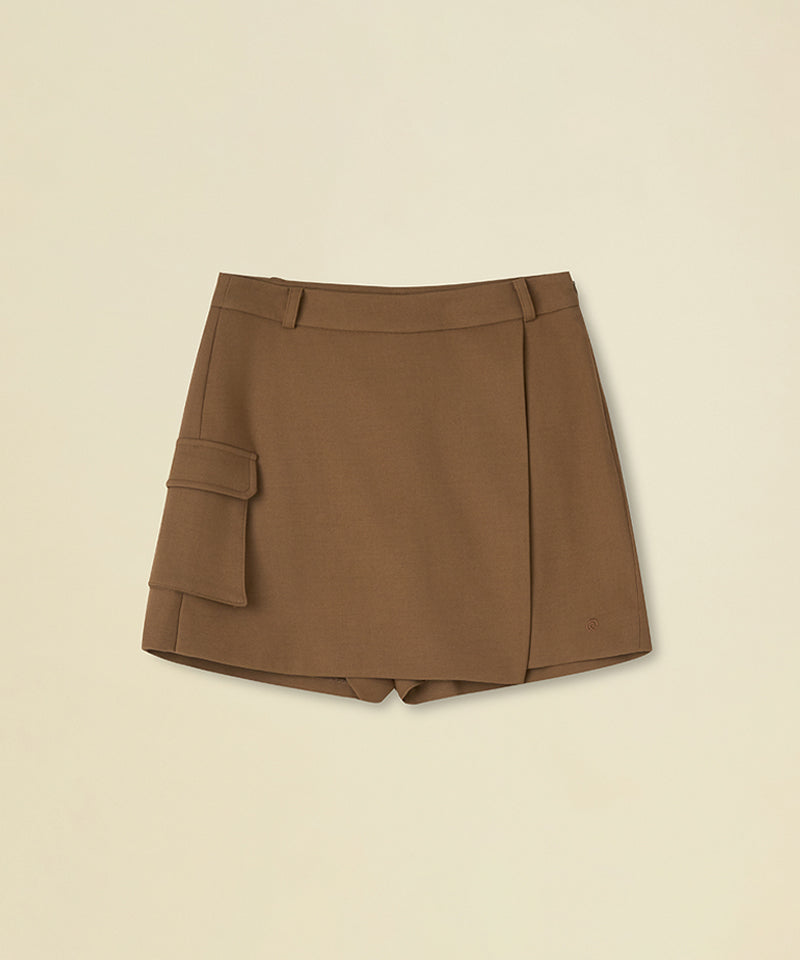 These wrap-style pants feature pocket details and a unique design, with a skirt front and pants back, creating different silhouettes from various angles. The side flap pockets not only add a stylish touch but also provide additional storage space. The basic design boasts a luxurious silhouette, making these pants versatile enough for both daily wear and more refined occasions.