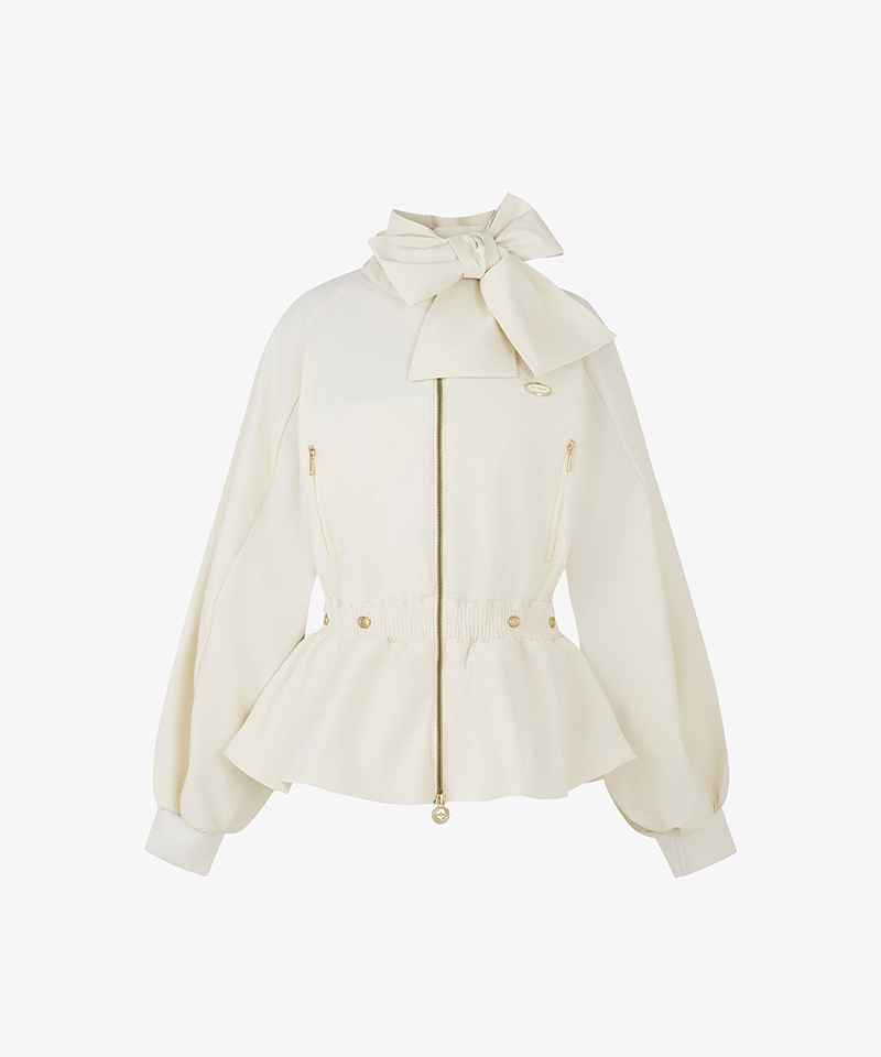 An elegant silhouette and feminine ribbon detail make this windbreaker truly shine on the course.