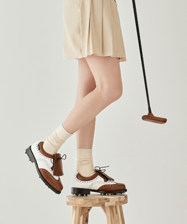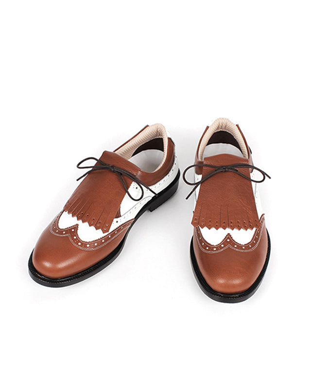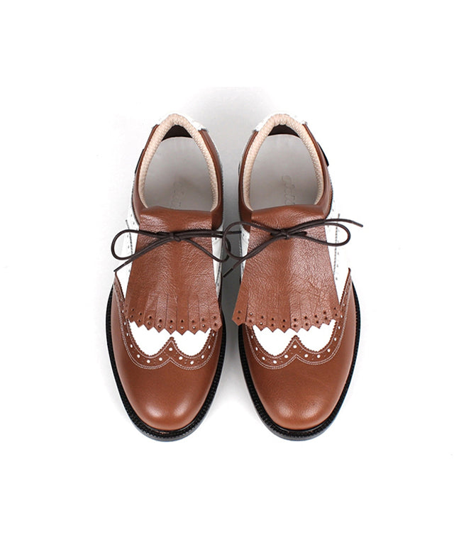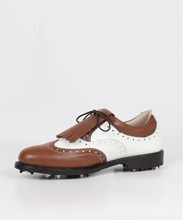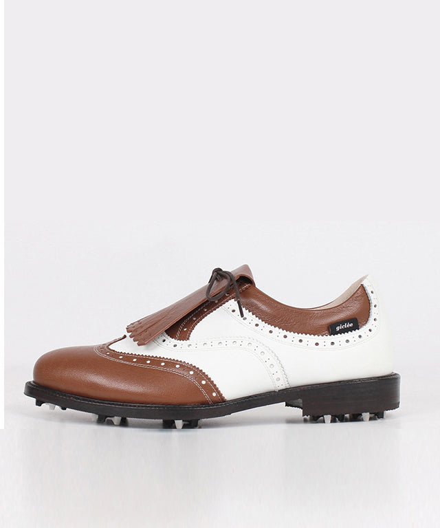 Giclee Unisex Classy Combi Premium Leather Golf Shoes - Brown