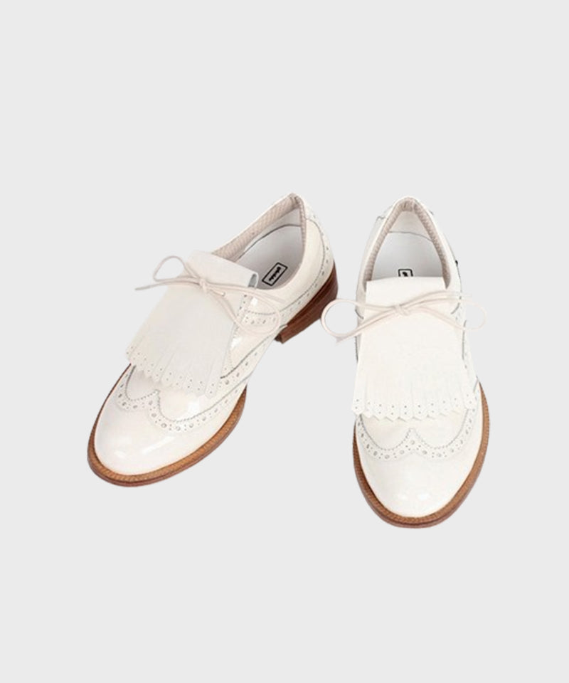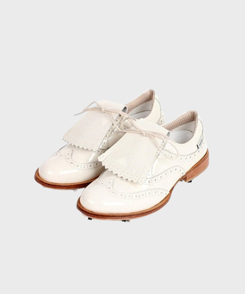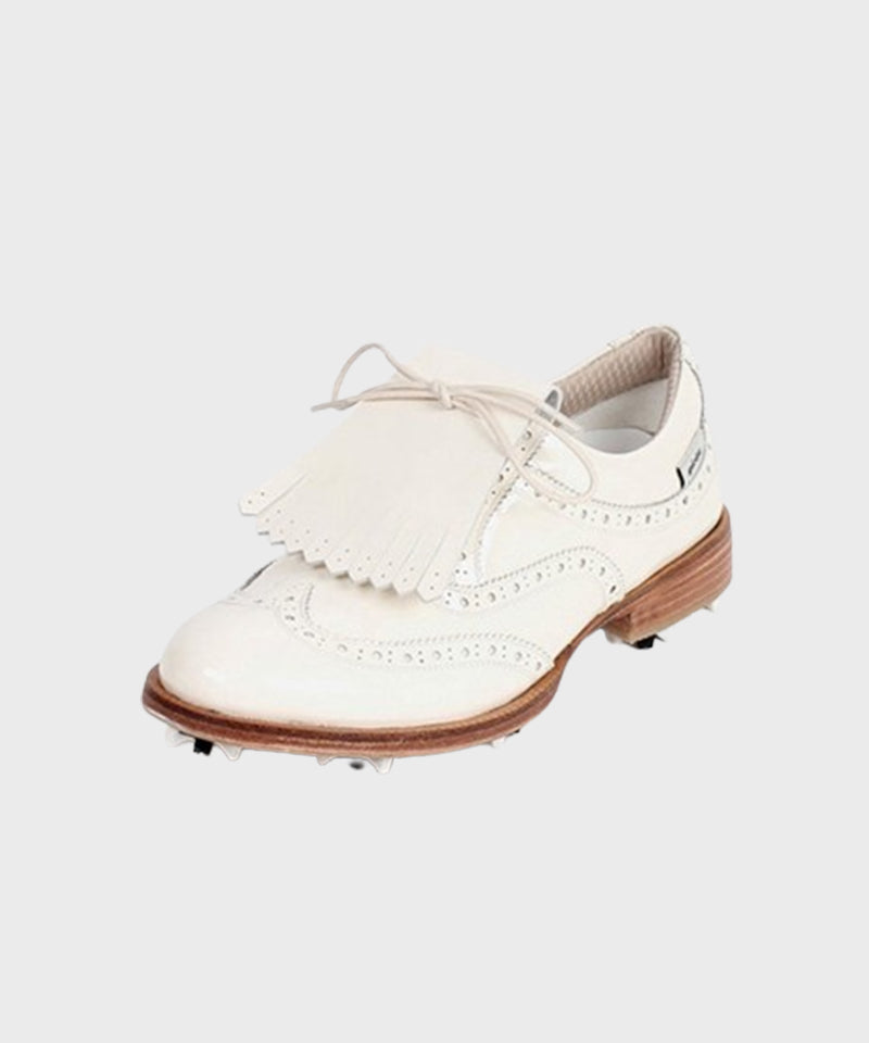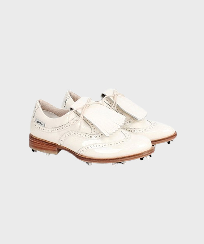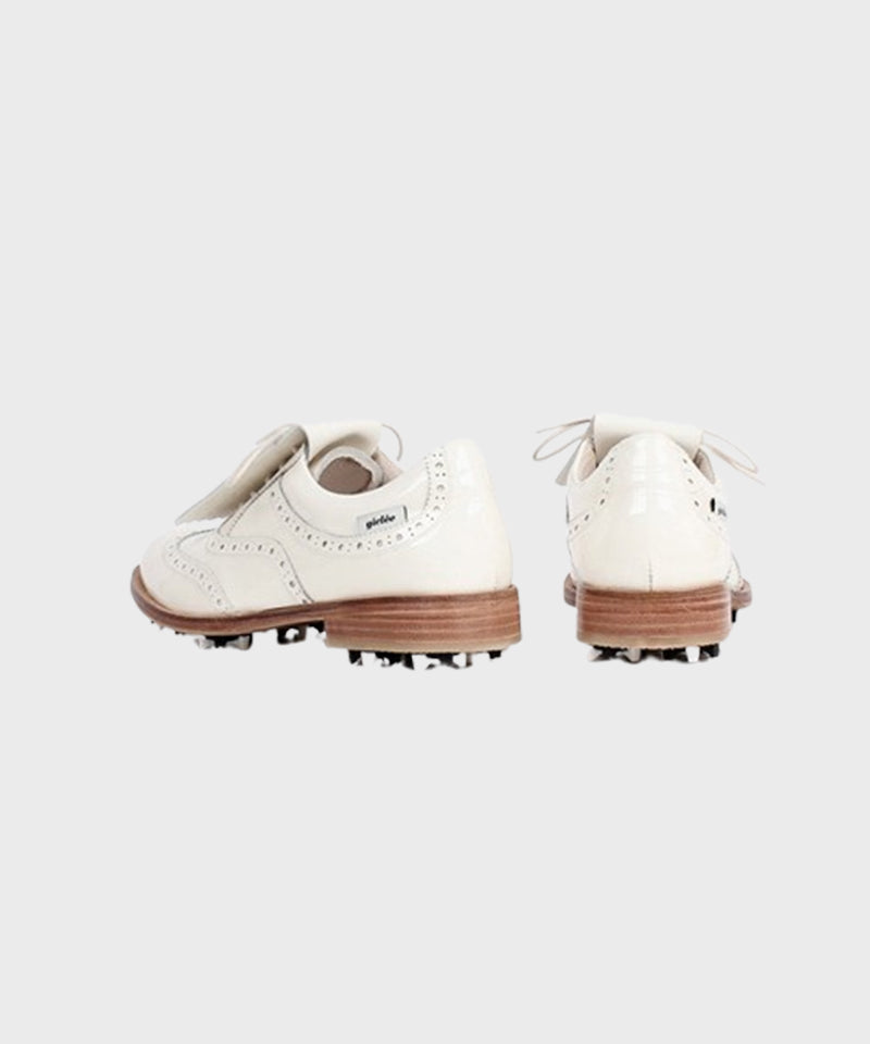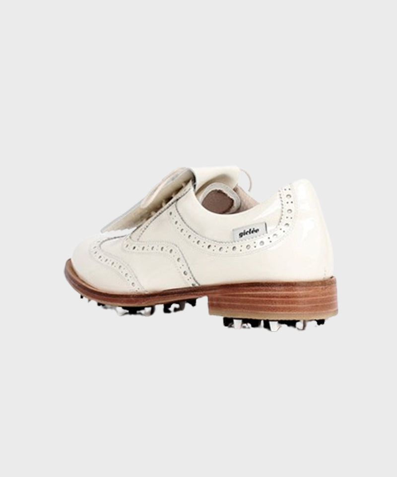 Giclee Unisex Classy Patent Premium Leather Golf Shoes - Ivory
