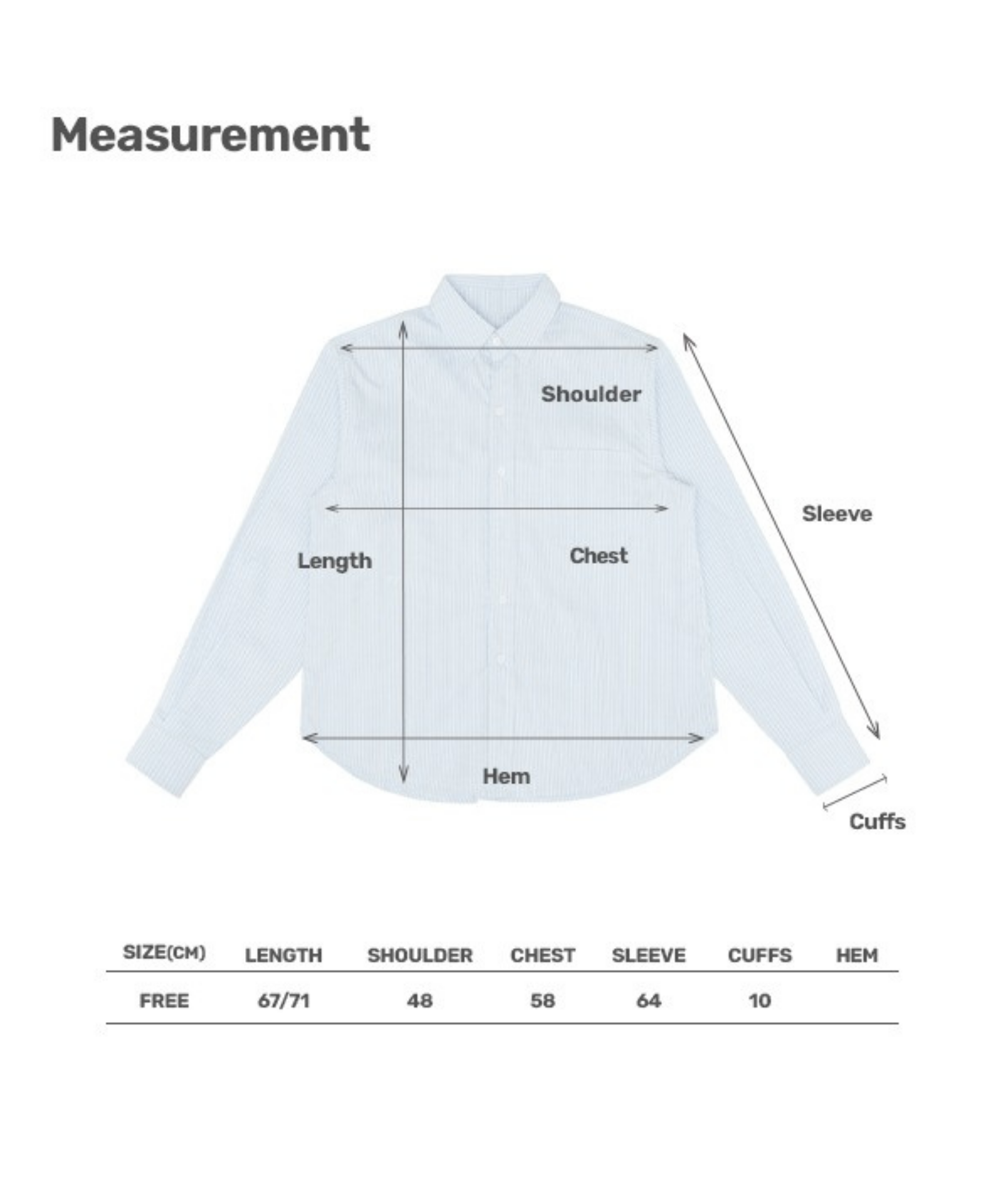 Size Length Shoulder Chest Sleeve Cuffs