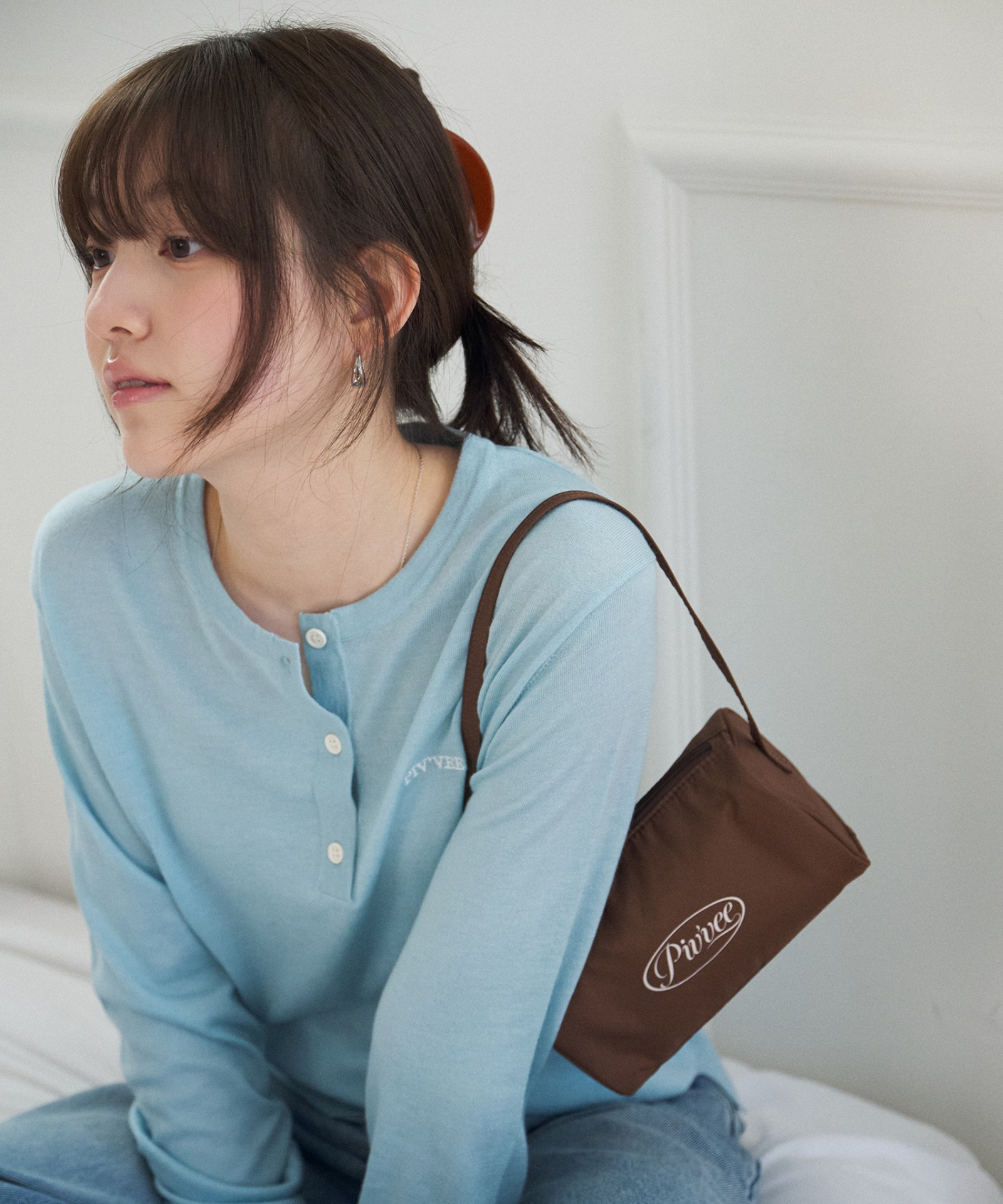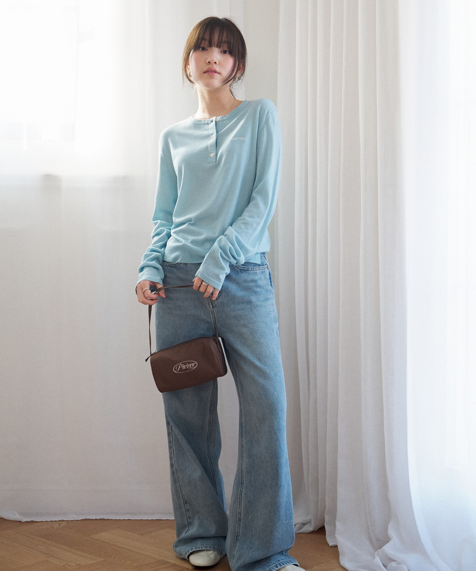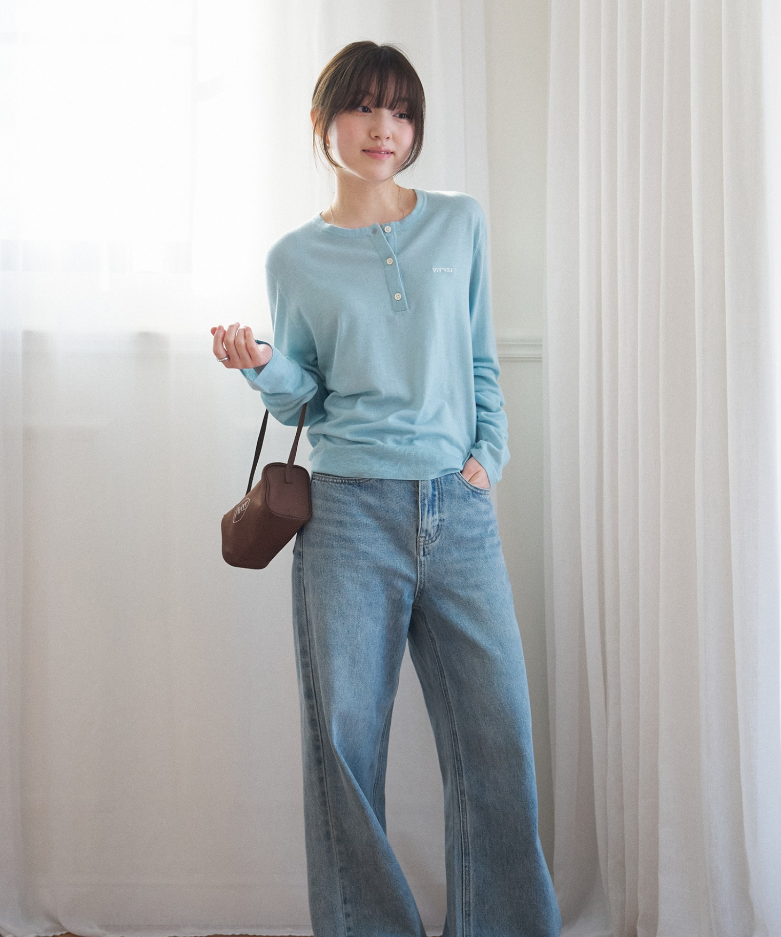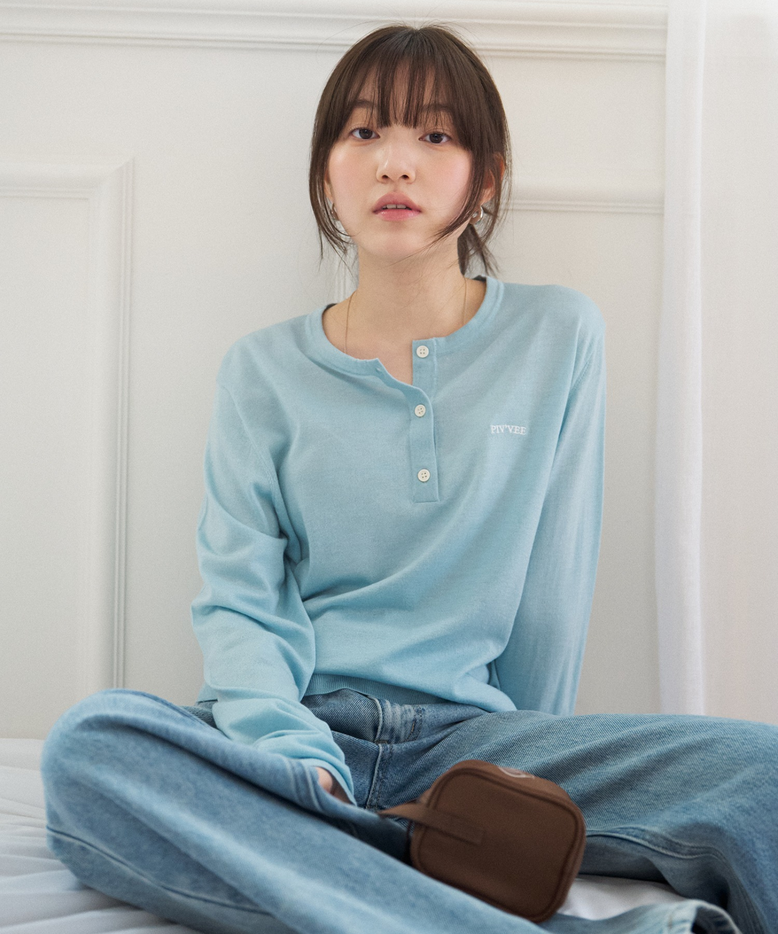 Henley neck knit top crafted from a soft and flexible silk-blend fabric for a smooth, comfortable feel. Classic button details enhance its timeless appeal, while PvB logo embroidery highlights the brand identity. A versatile everyday knit that can be worn on its own or effortlessly layered with various pieces.