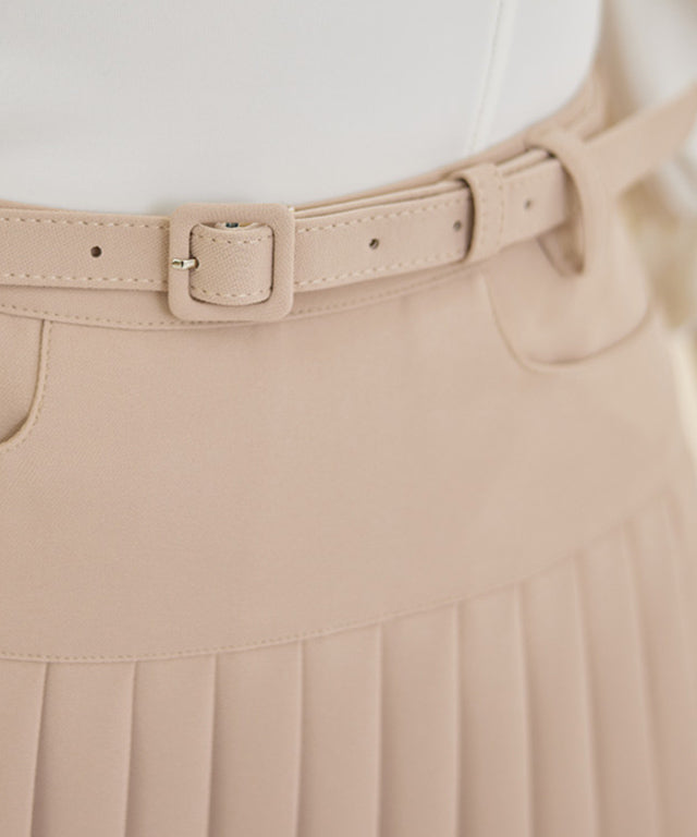 It is a product that emphasizes the color and fine wrinkles that stand out everywhere-! The belt in the set is made of the same fabric as the skirt, so it's a perfect belt for the skirt. The belt is detachable, so it is a highly useful product.It is not too thin with less wrinkling and thick pleats, so it can be worn warmly in spring and autumn! You can wear it warmly with thin brushed underpants!