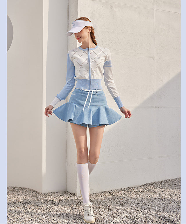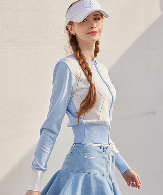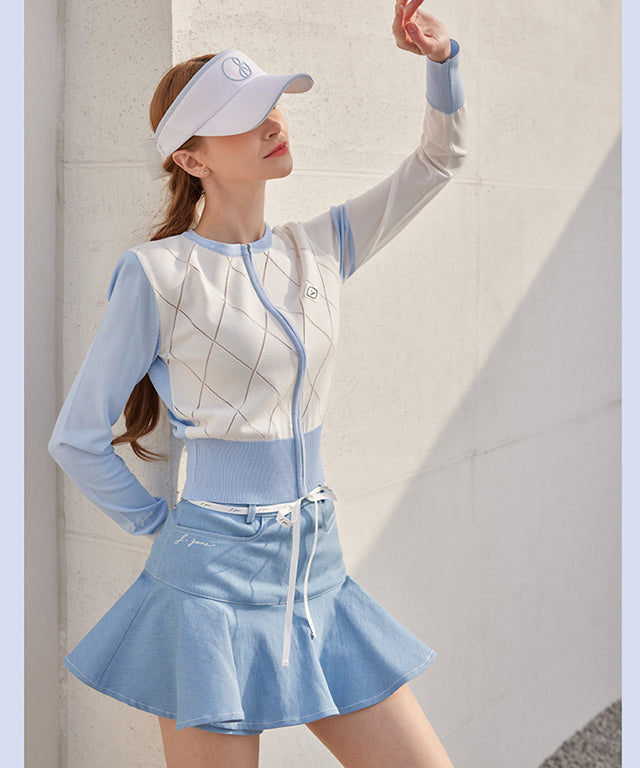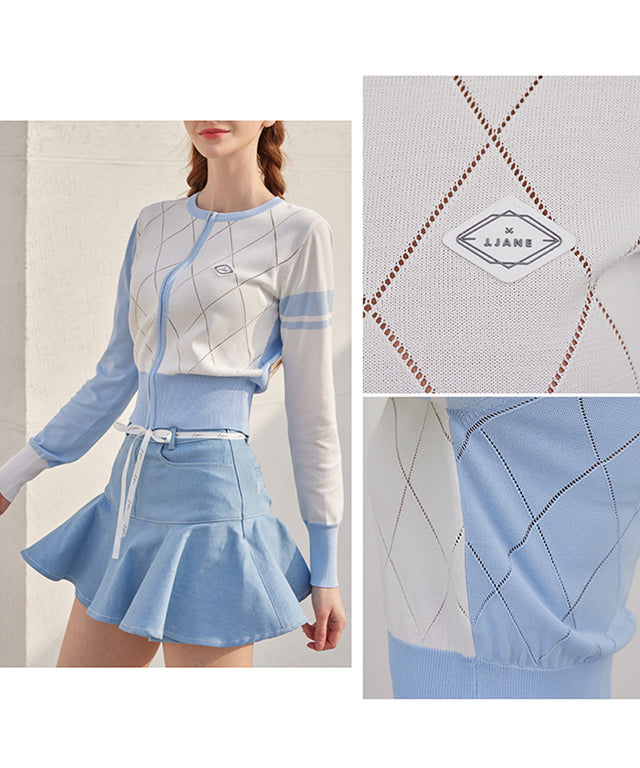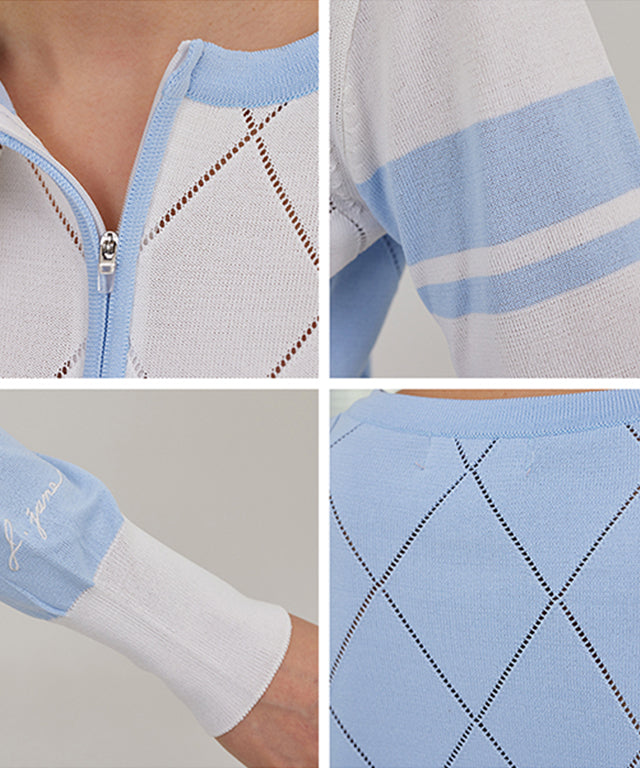 J.Jane Diamond punching Summer Knit Zip-up - Blue