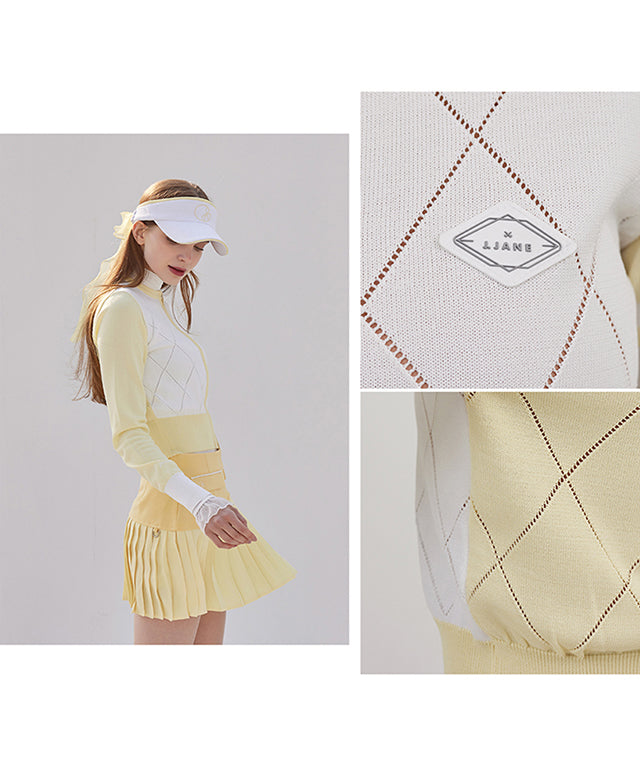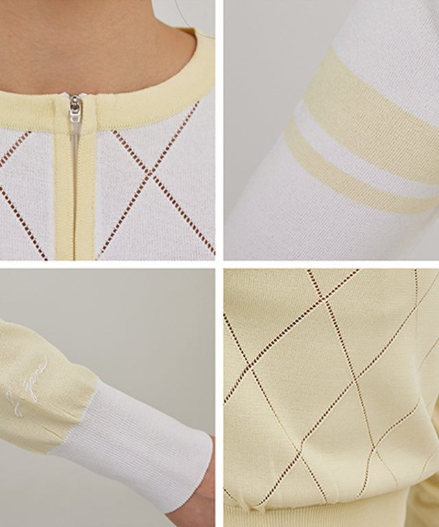 J.Jane Diamond punching Summer Knit Zip-up - Yellow