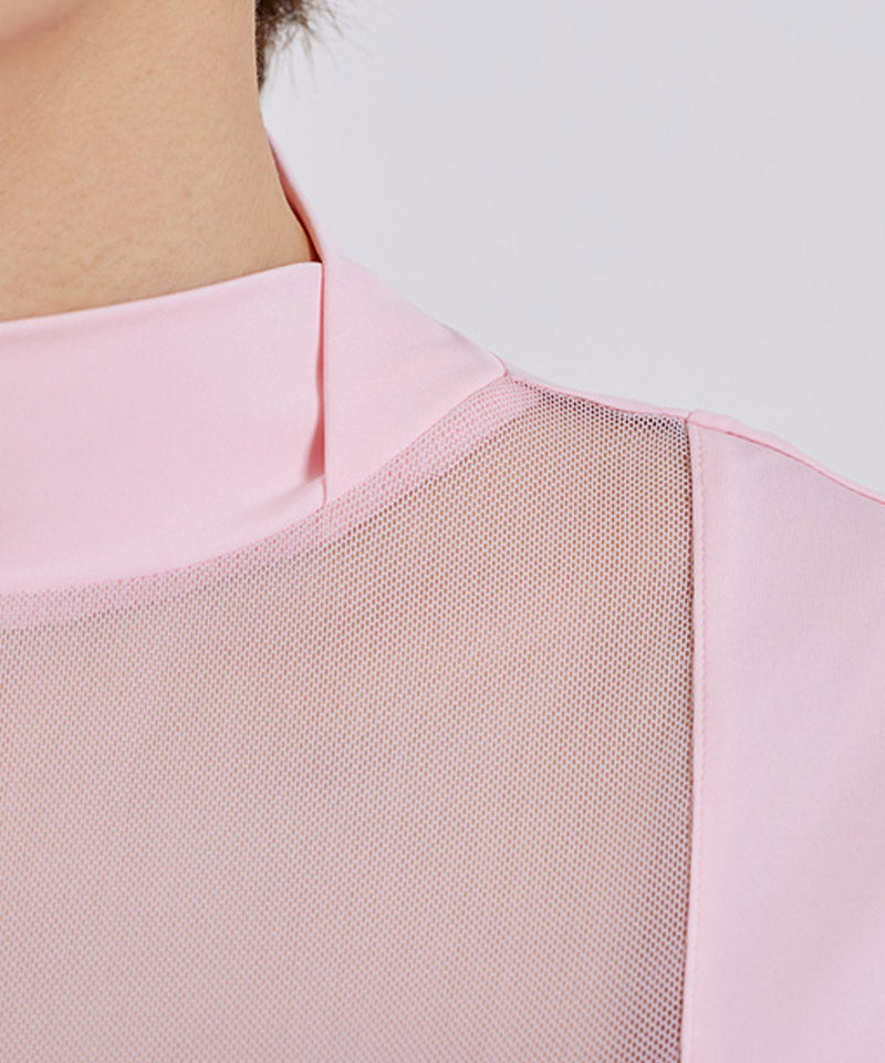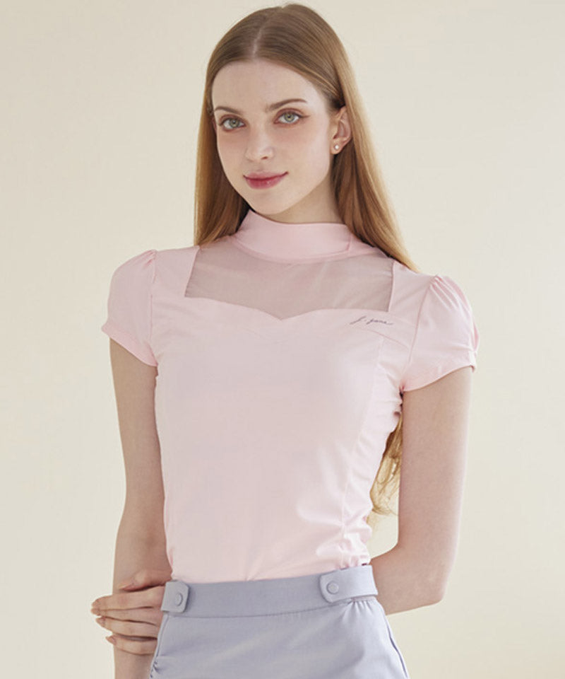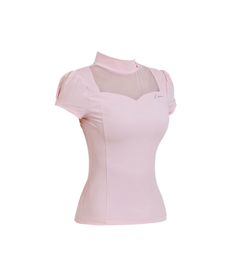 J.Jane Heart Neck See-Through Half Sleeve T-Shirt - Pink