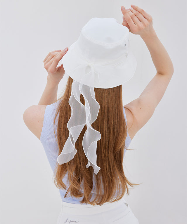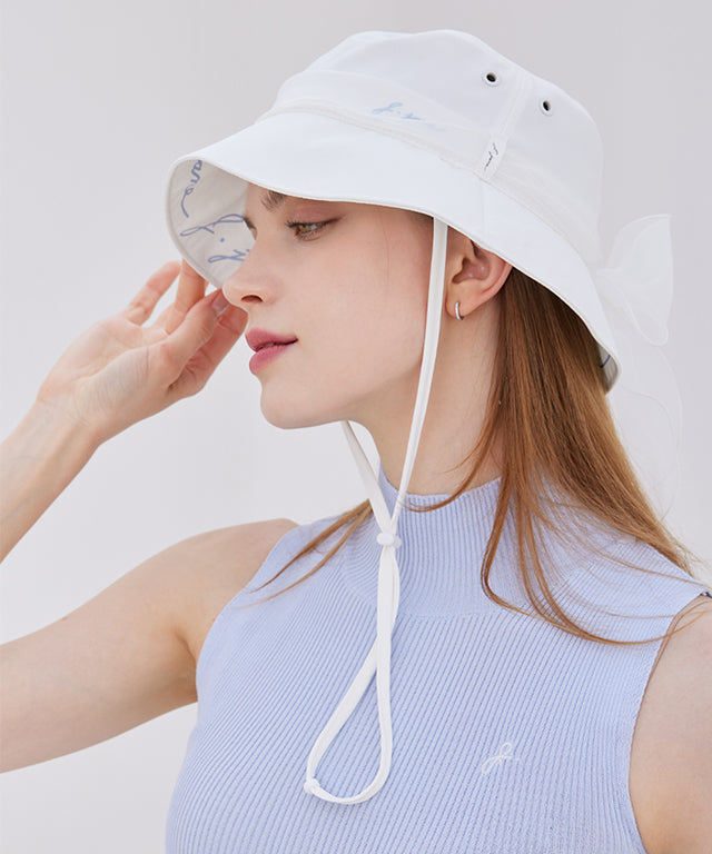 J.Jane Hidden Logo Ribbon Bucket Hat - (White-Blue)
