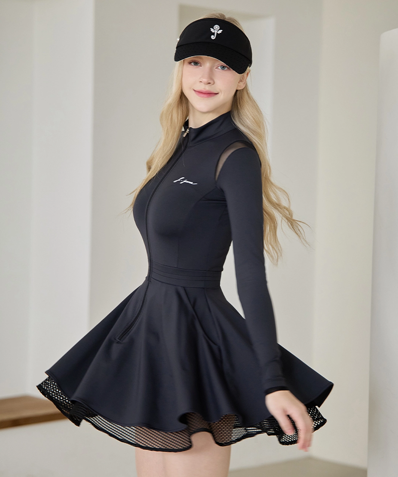 J.Jane Mochi Long Sleeve Double Flared Dress - Black