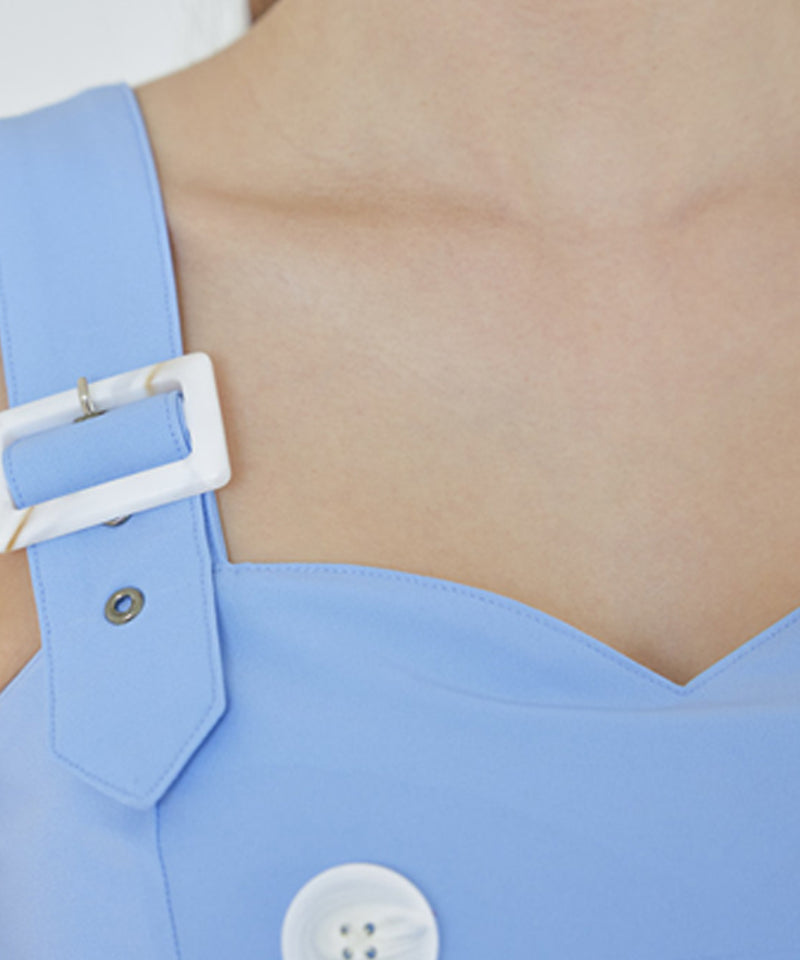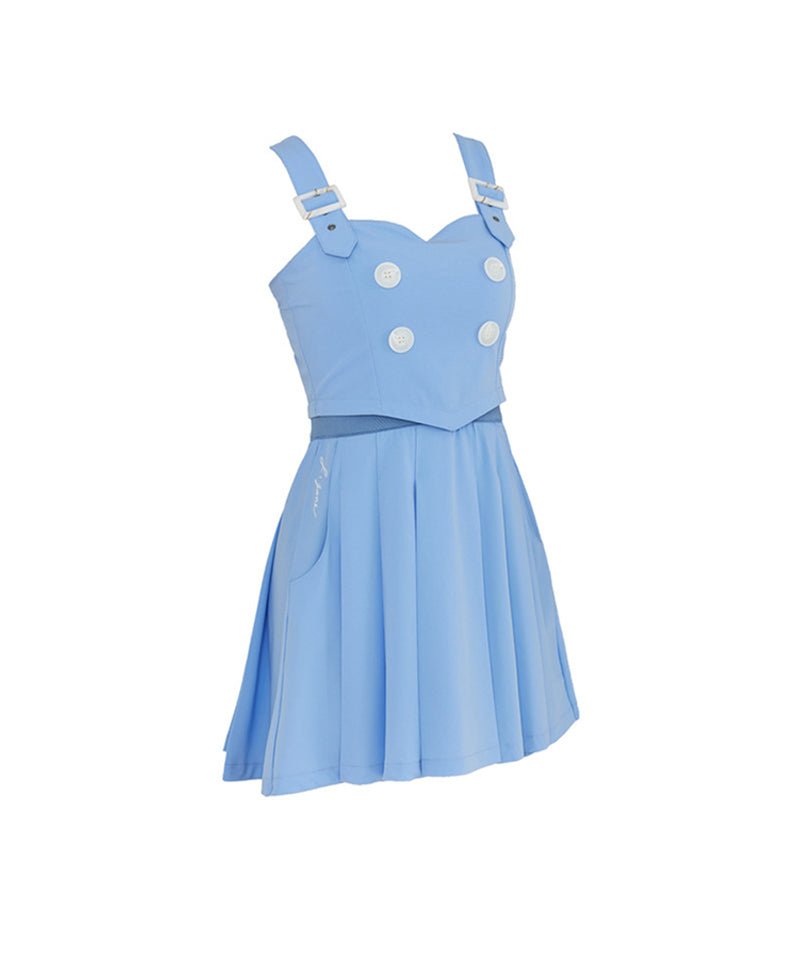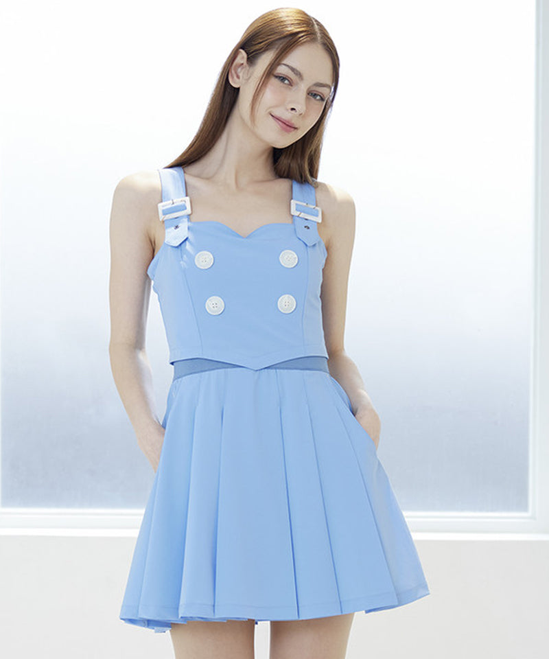 Pleats Suspenders Dress -  Blue