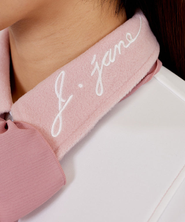 A heavenly chiffon scarf and a cozy fleece collar are the points for a luxurious atmosphere. You can create a variety of looks with a removable scarf that becomes a point of embroidery logo! The ruffle of the sleeve is made of material fabric, comfortable and stretchy, and it is a product that has caught both design and functionality.
