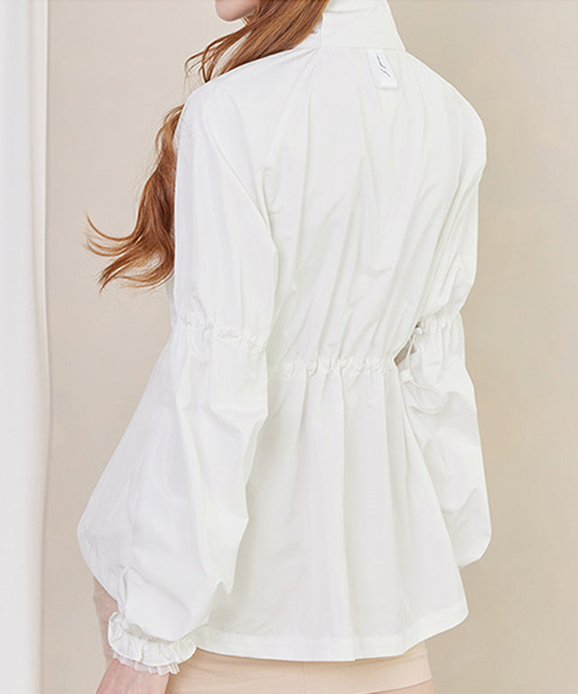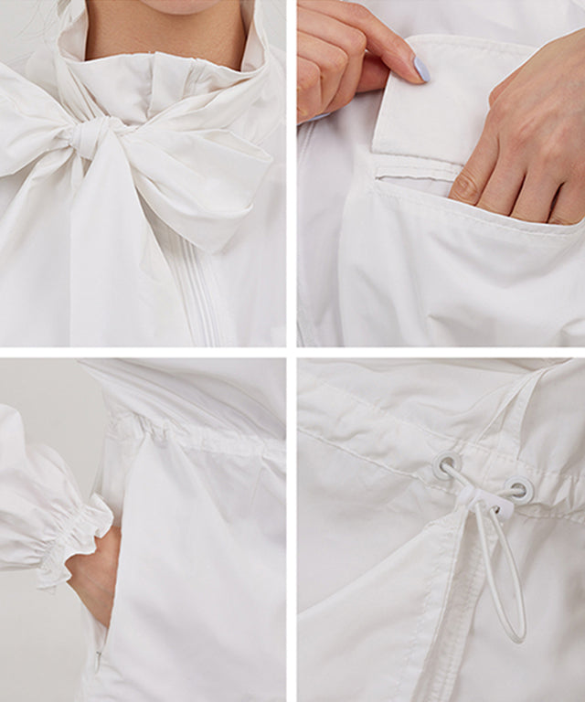 A windbreaker that can be worn comfortably anytime, anywhere with an oversized fit. The sleeves and waist are adjustable, so if you tighten the string, you can create a feminine silhouette! It is an over-fit windbreaker that can be waterproof in everyday life.
