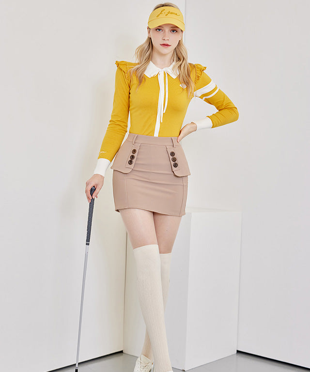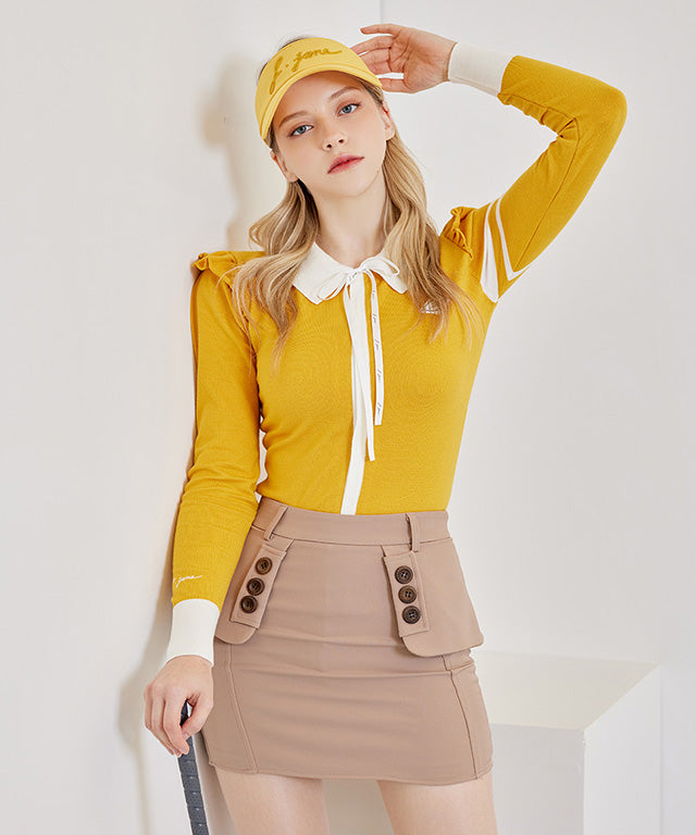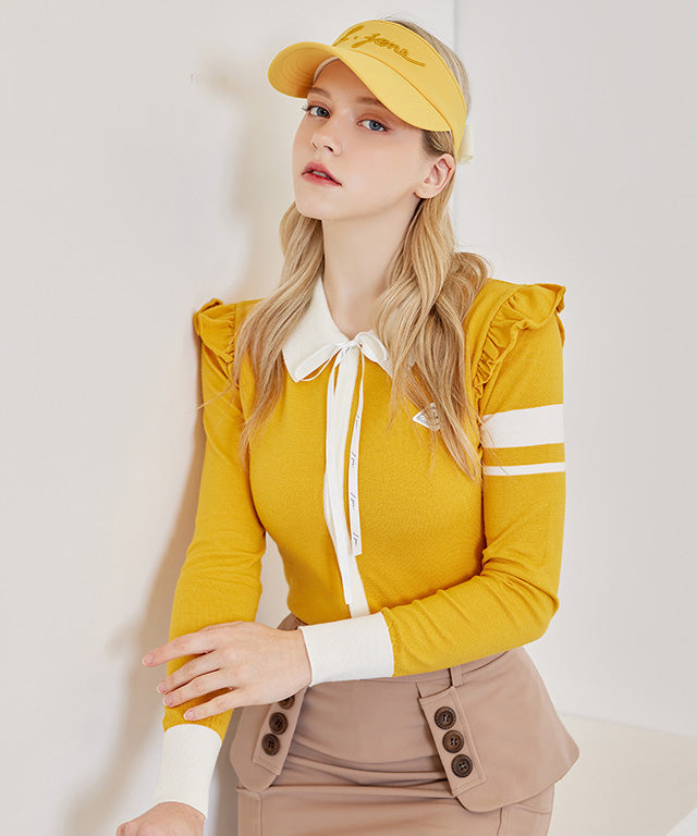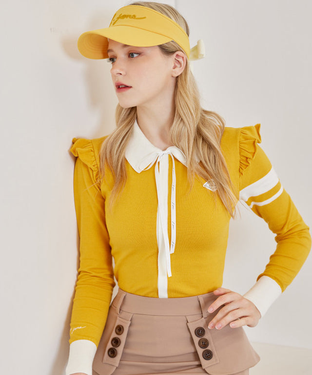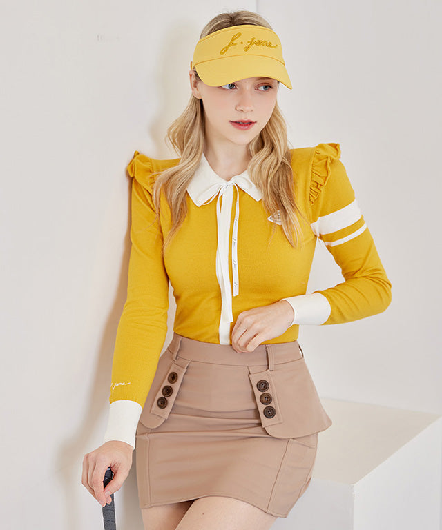 J.Jane Shoulder Frill Knit Zip-Up (Mustard)