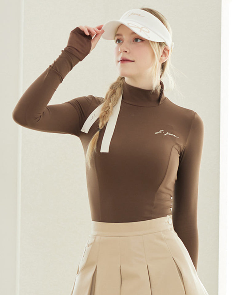In the chilly season, a basic slim T-shirt is a must-have! It has a slim fit that doesn't look bulky, yet provides excellent warmth with its soft fleece lining fabric. The simple design also includes a high neck point and hand warmer details.