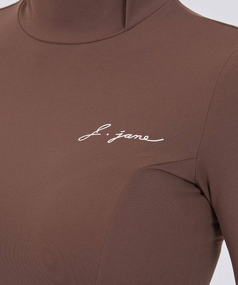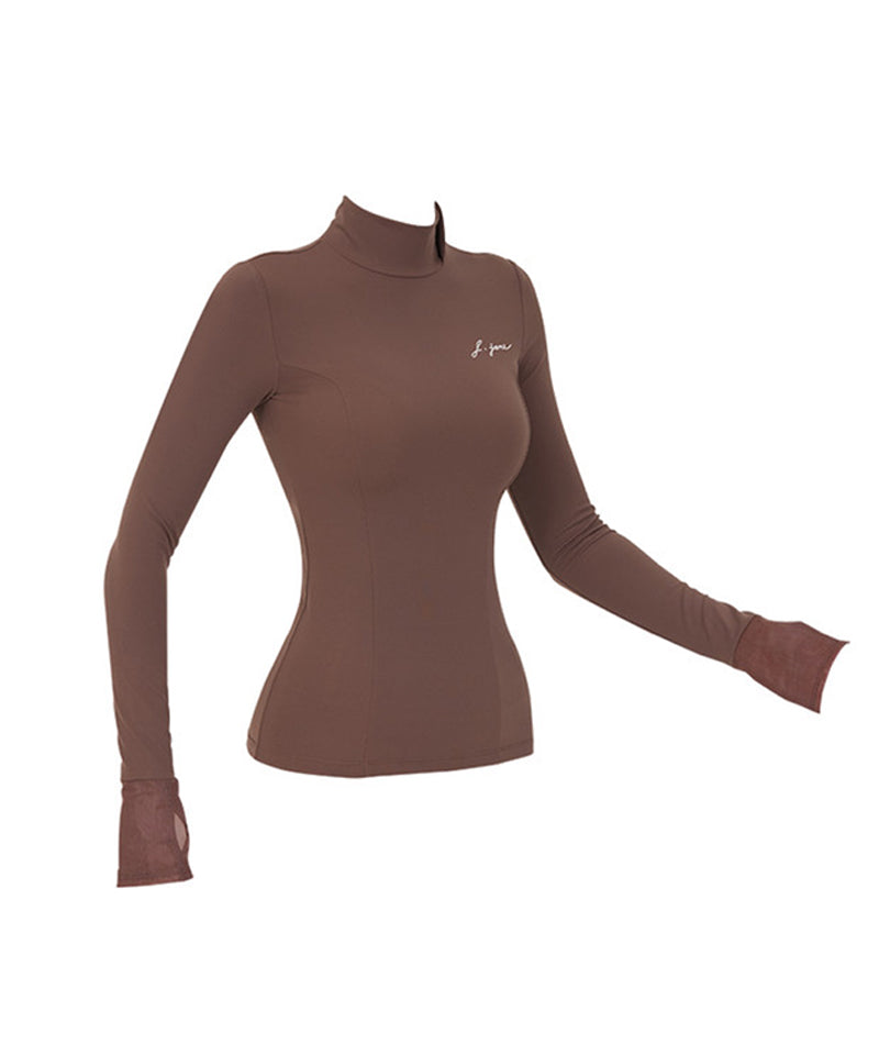 J.Jane Soft Brushed Slim High-Neck T- Shirt - Brown