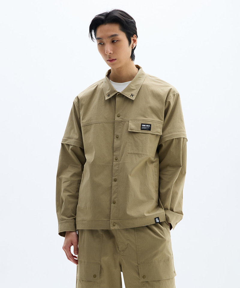 The Jamie West Detachable Collar Point Stretch Jacket in Beige offers a perfect blend of style and adaptability. Its detachable collar allows you to shift from polished elegance to a relaxed, modern look with ease. Made from stretch fabric, this jacket provides exceptional comfort while maintaining a sharp, tailored fit—ideal for sophisticated occasions or everyday refinement.