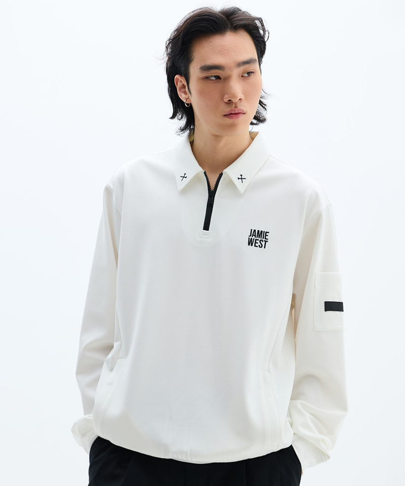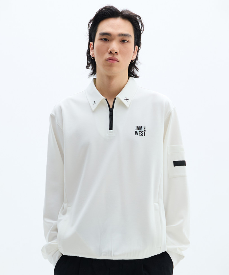 Jamie West Essential Collar Point Half Zip-up Sweatshirts -White