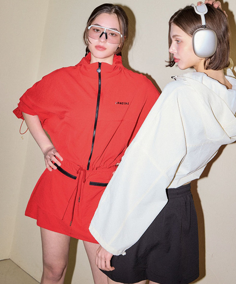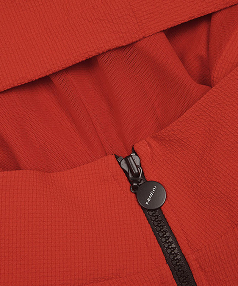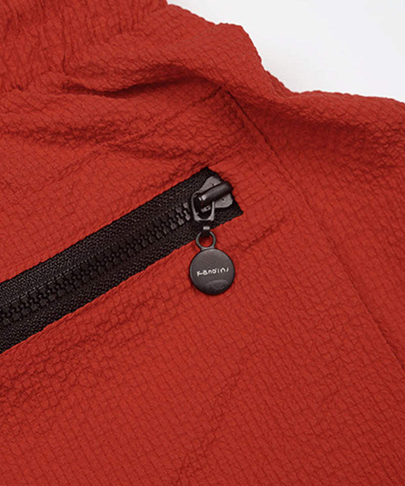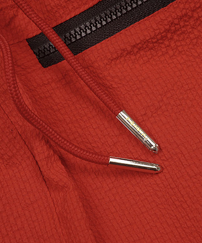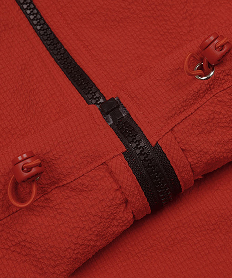 Lightweight windbreaker with high density increased warmth with lining water-repellent treatment blocks rain and wind. Armhole eyelets for increased breathability a relaxed fit with a semi-overfit for comfortable movement. A variety of lengths and fits can be created with the hem string.