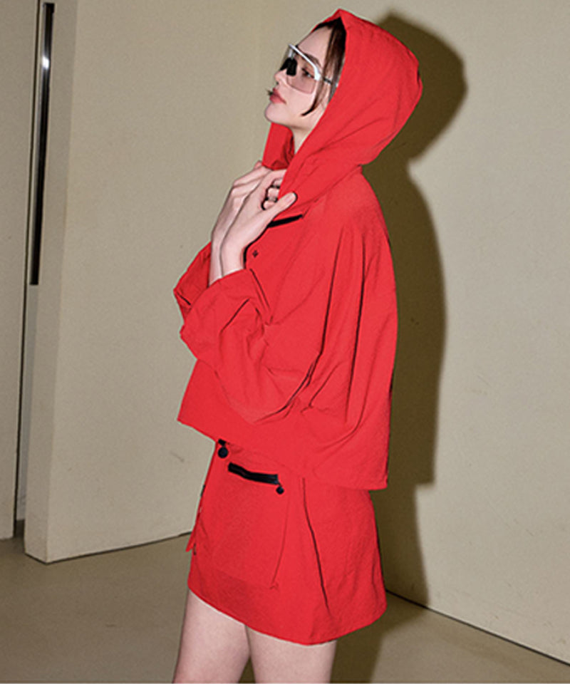 KANDINI Airy Hoodie Jacket & Skirt Set - Red
