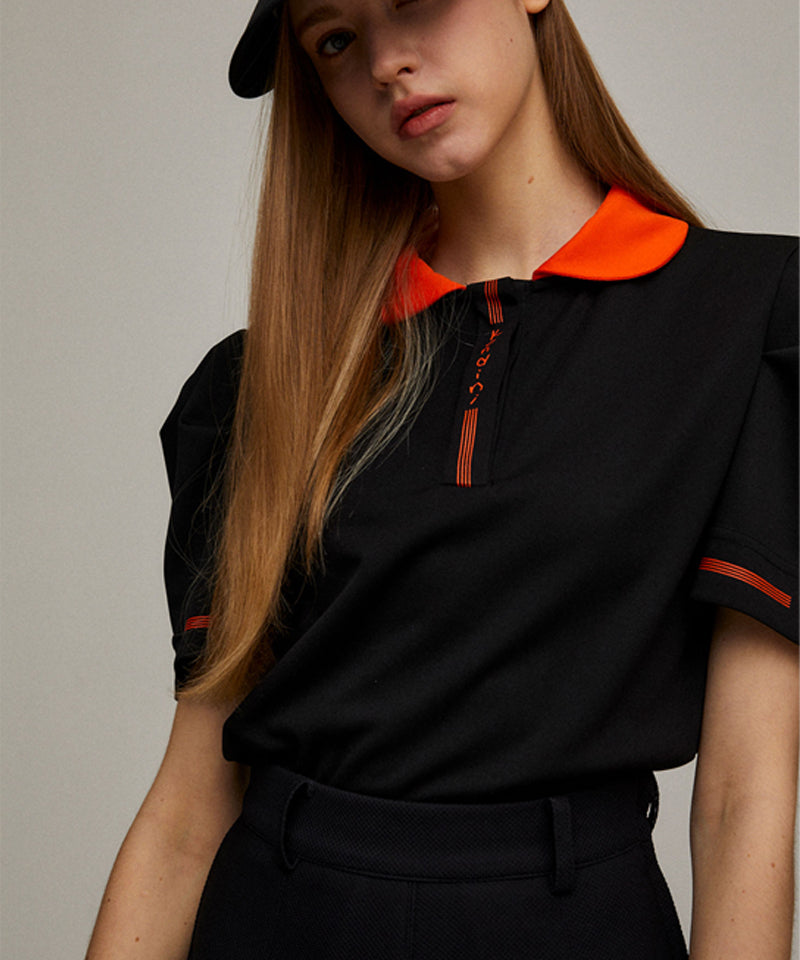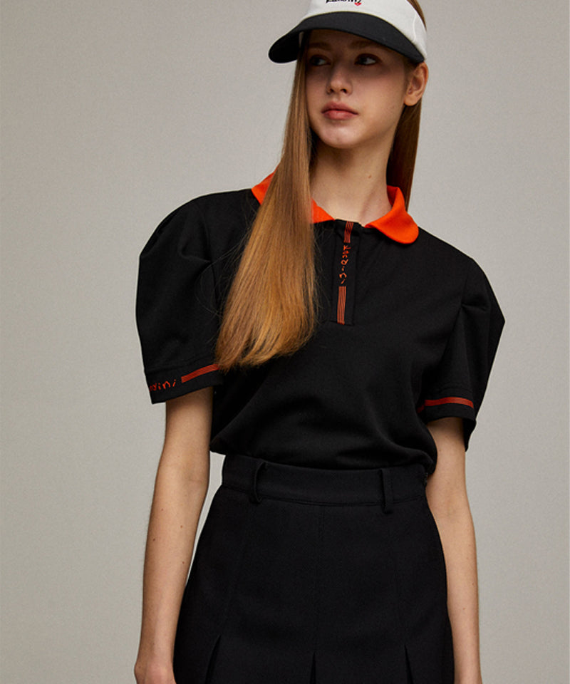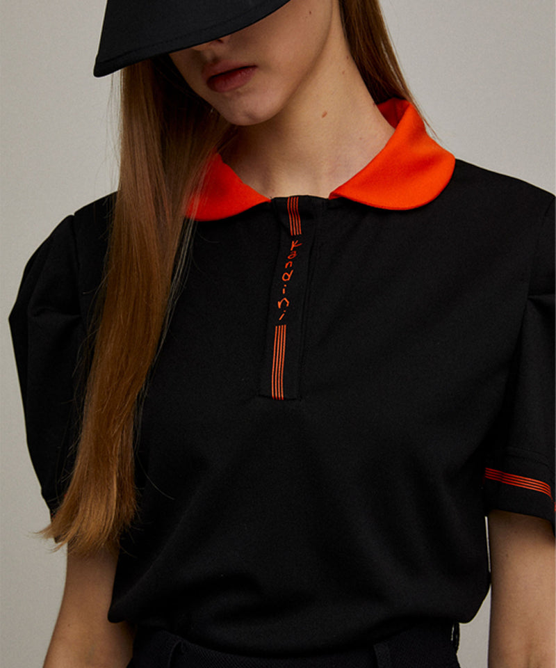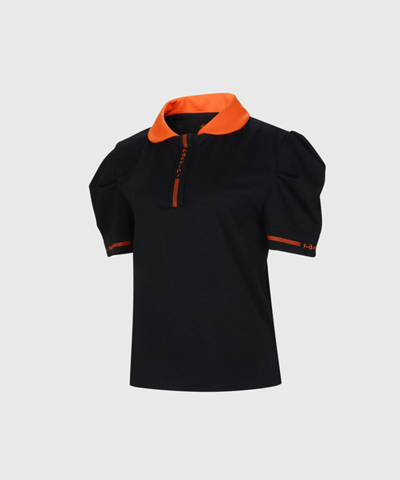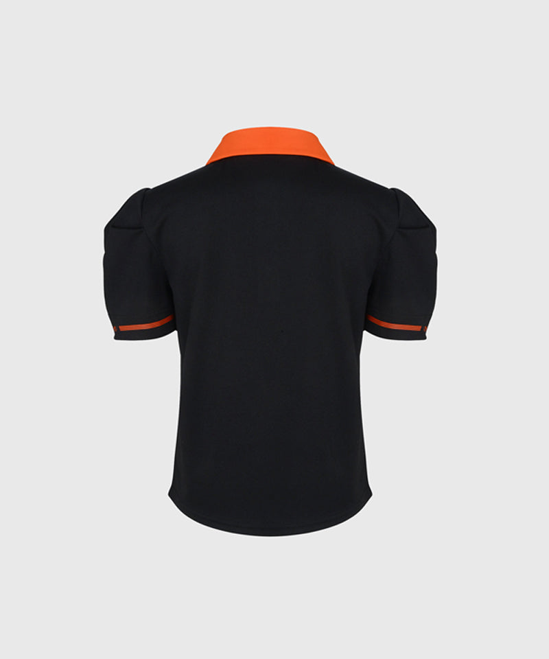 KANDINI Color Round Polo Shirts With Puff Sleeve - Orange